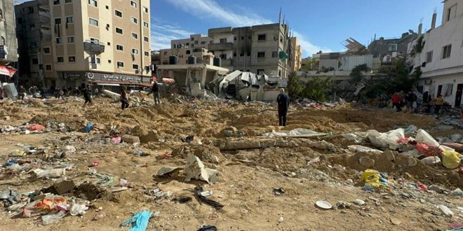 Jerusalén ocupada, 17 dic (SANA) Las fuerzas de ocupación israelíes cometieron hoy una nueva masacre en la Franja de Gaza, cuando sus buldóceres atropellaron a personas desplazadas y pacientes, y los enterraron bajo los escombros en el patio del hospital Kamal Adwan en una zona de Jabalia, al norte de la Franja.