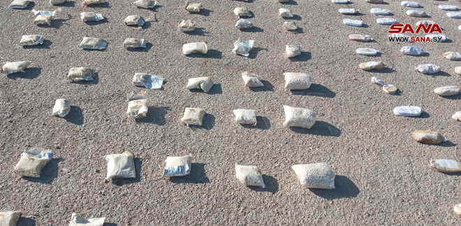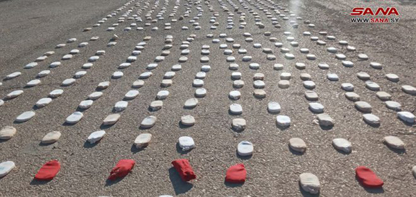 Una fuente de las fuerzas de seguridad afirmó a SANA, que en el marco de los operativos de lucha antiterrorista y contra los grupos de narcotráfico en el desierto sirio, fue confiscada una gran cantidad de hachís y Captagon”.