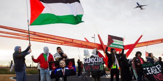 Washington, 9 ene (SANA) Los manifestantes que protestaban contra el apoyo de la administración Biden a Israel en su actual guerra genocida en Gaza intentaron bloquear una entrada importante del aeropuerto Dallas Love Field cuando estaba previsto que llegara el presidente de los Estados Unidos.