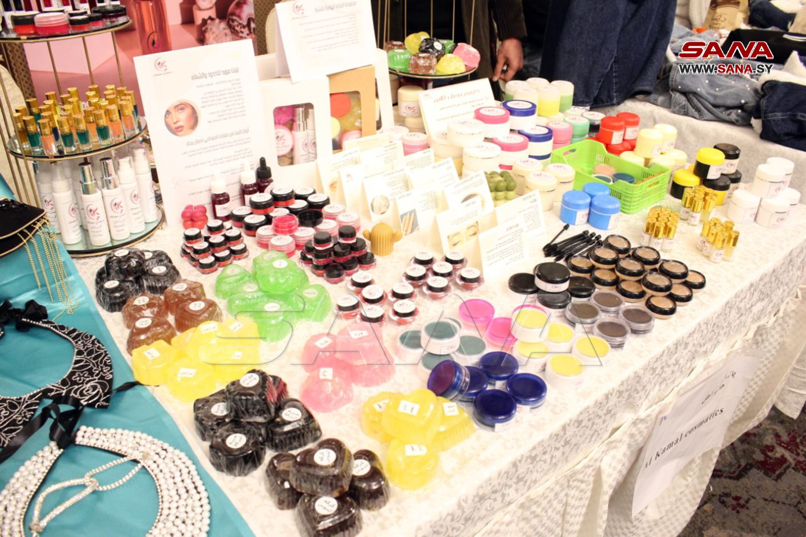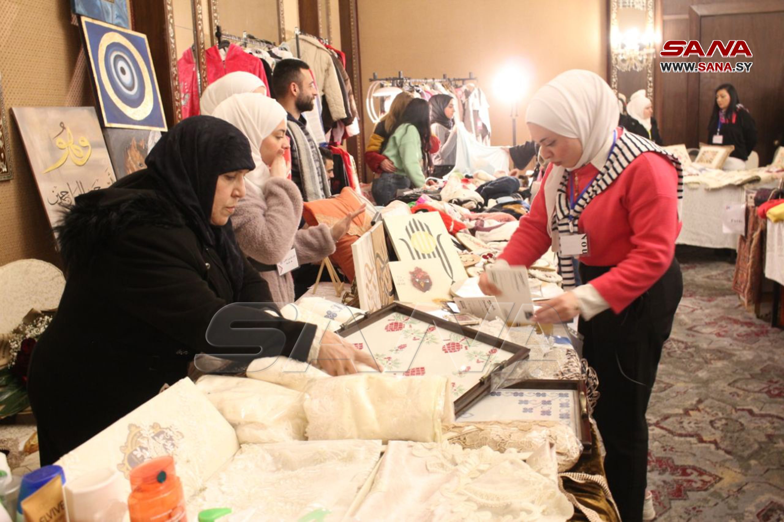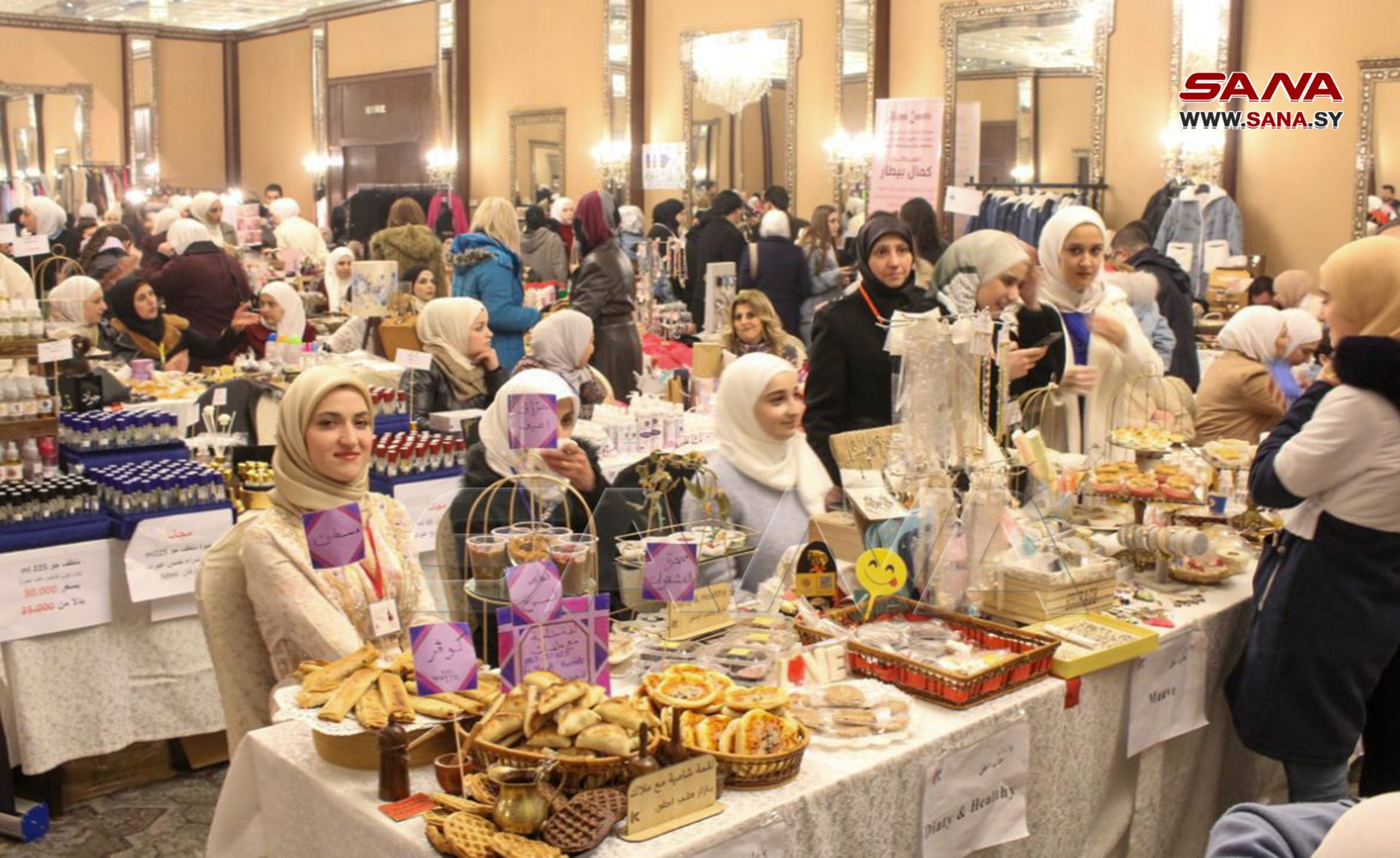 En el evento, se presentan manualidades hechas por las féminas en sus hogares como ropa de lana, tejidos bordados, artesanías, cosméticos, pintura sobre vidrio, dulces y variedades de la cocina culinaria de Alepo.