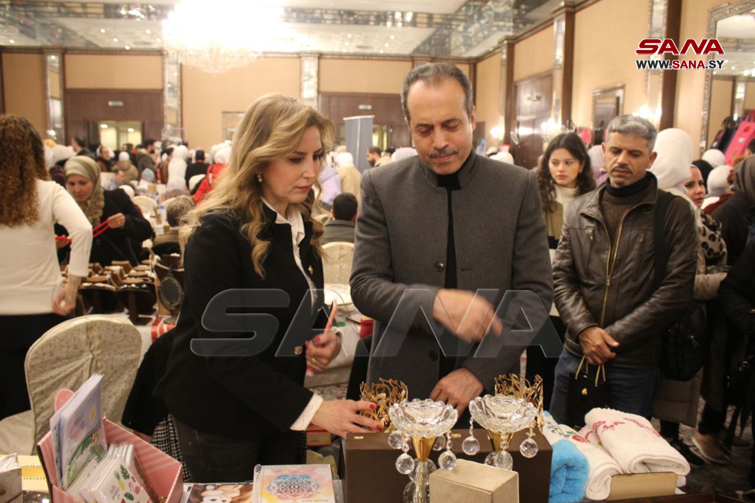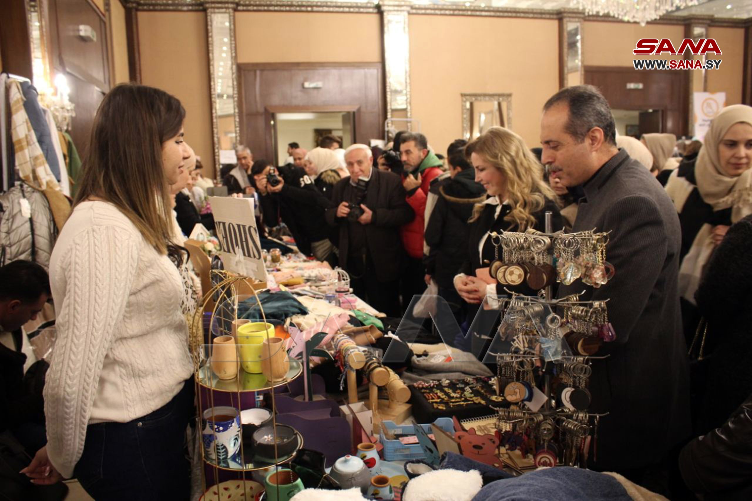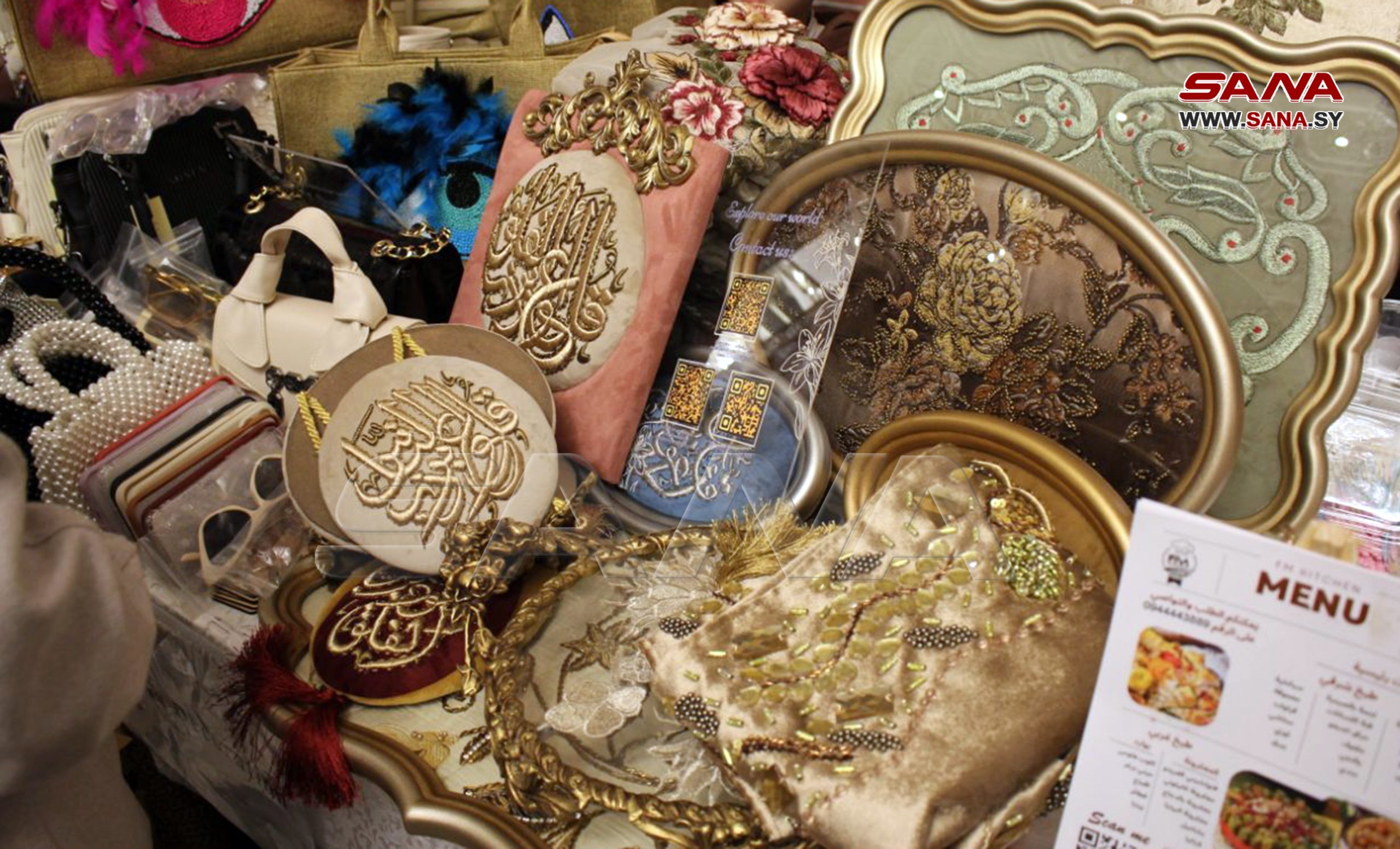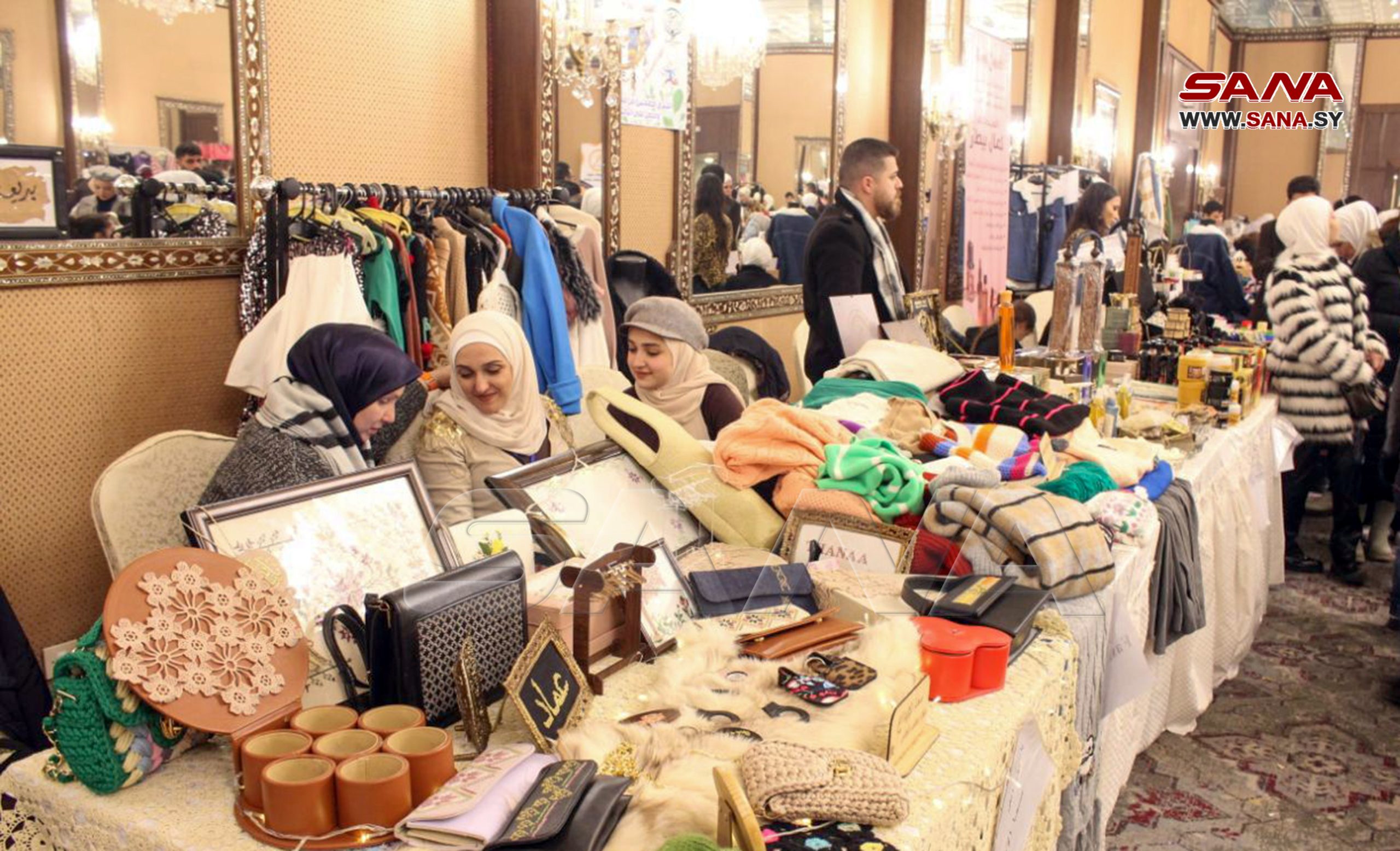 En el evento, se presentan manualidades hechas por las féminas en sus hogares como ropa de lana, tejidos bordados, artesanías, cosméticos, pintura sobre vidrio, dulces y variedades de la cocina culinaria de Alepo.