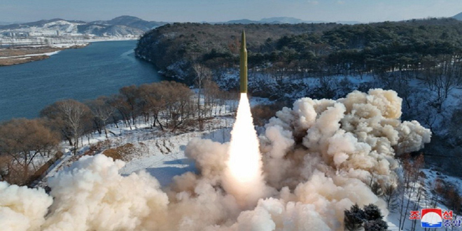 La agencia norcoreana KCNA informó que “el 14 de enero, la Administración General de Ciencia de Cohetes de la RPDC realizó un lanzamiento de prueba de un misil balístico de combustible sólido de medio alcance con una ojiva guiada de maniobra hipersónica”.