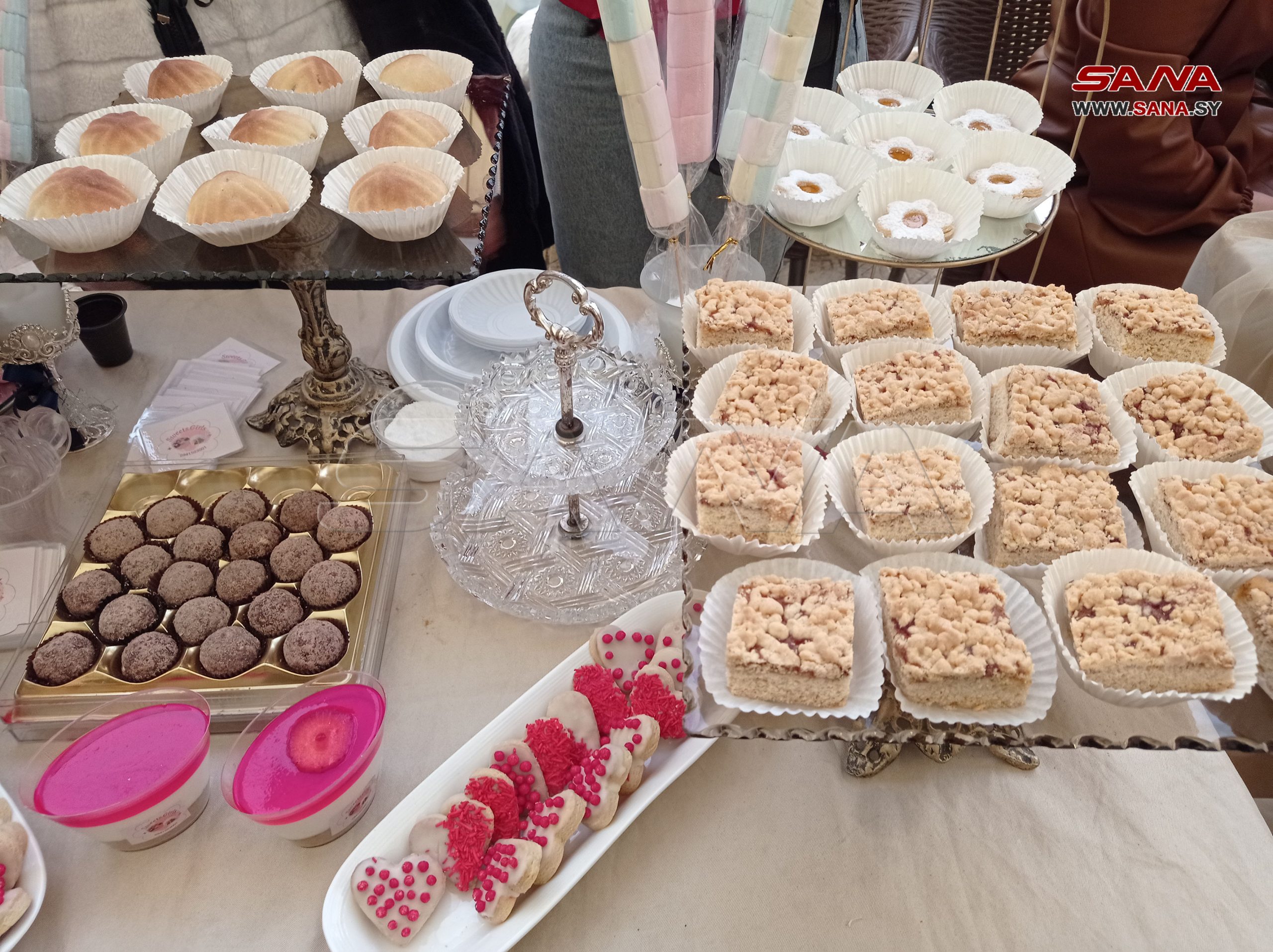 Las participantes tuvieron la oportunidad de promover sus manualidades de ropas de lana, bordados, los fomosos platos típicos y postres de la cocina de Alepo, entre otros.