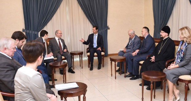 El presidente Bashar al-Assad recibió este domingo a una delegación rusa que incluye a parlamentarios y personalidades sociales, encabezado por el diputado en la Duma Estatal, Serguei Gavrilov.