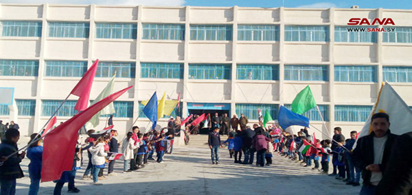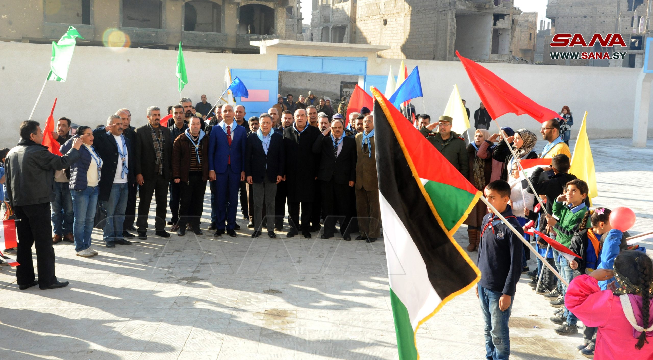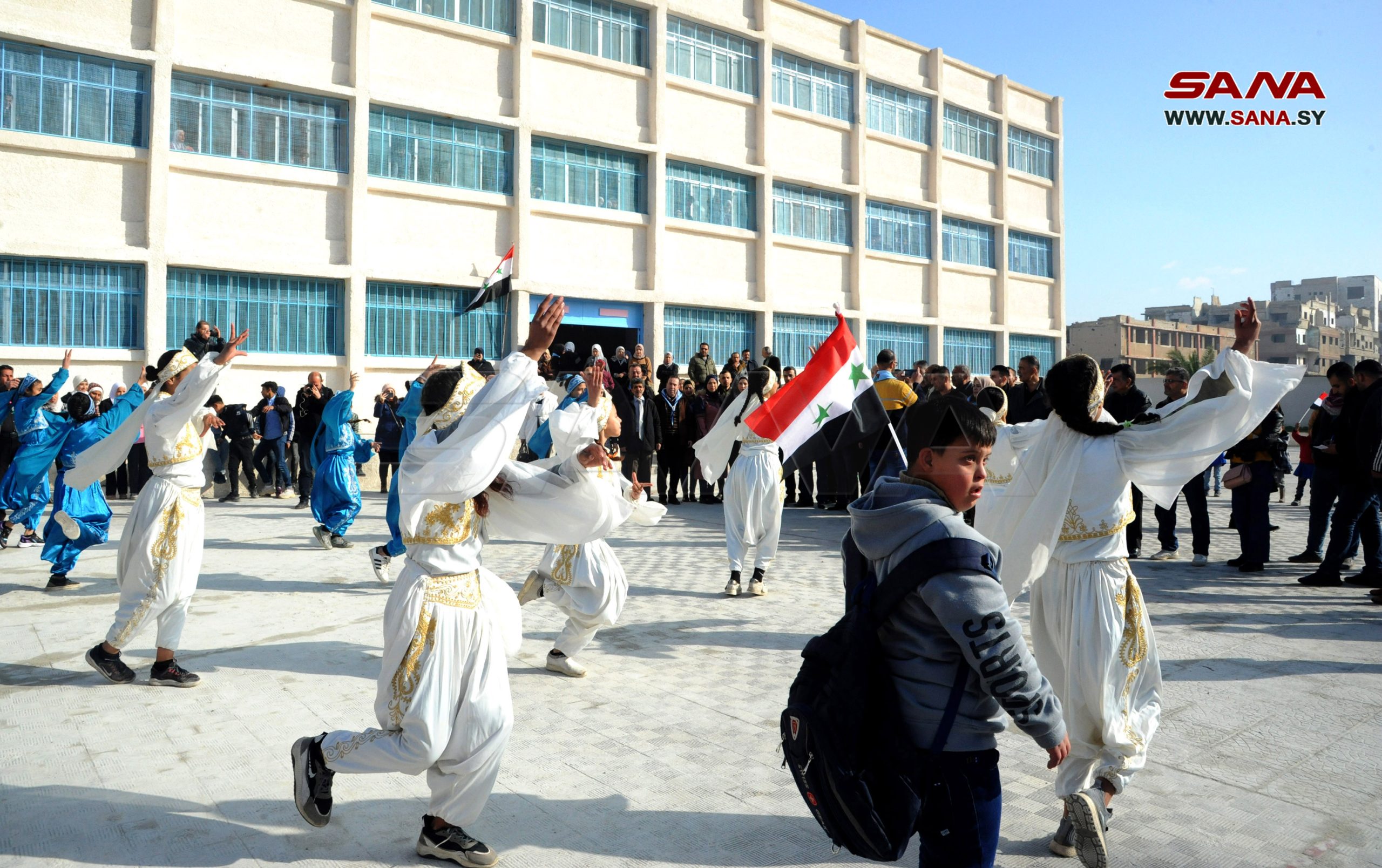 Damasco, 19 feb (SANA) Las autoridades del sector de educación reinauguraron la Escuela de Educación Básica, Mártir Ahmed Zaal Fadel, en la ciudad de Al-Hajar Al-Aswad al sur de Damasco, y que había sufrido daños materiales durante la guerra.