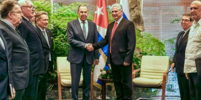 Díaz-Canel destacó el significado especial de la novena visita al país del jefe de la diplomacia rusa, que en pocos días – dijo cumplirá 30 años al frente de esa importante cartera del gobierno euroasiático.