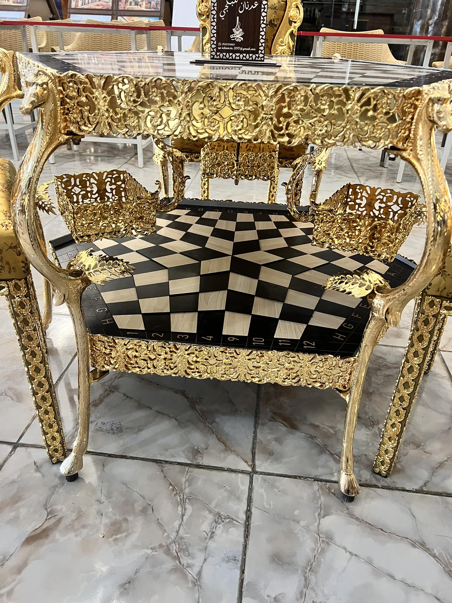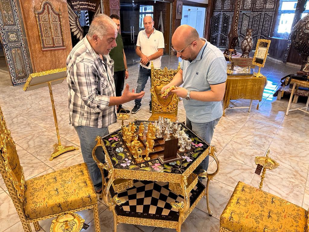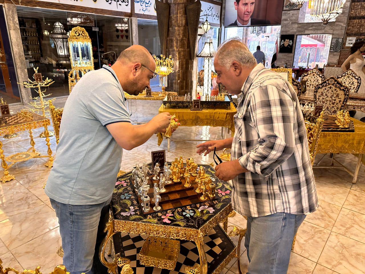Mediante el ajedrez, Tanbakji deslumbró el mundo con su nueva innovación al diseñar un juego de ajedrez sirio hecho de cobre chapado en oro que permite partidas para dos o tres jugadores.