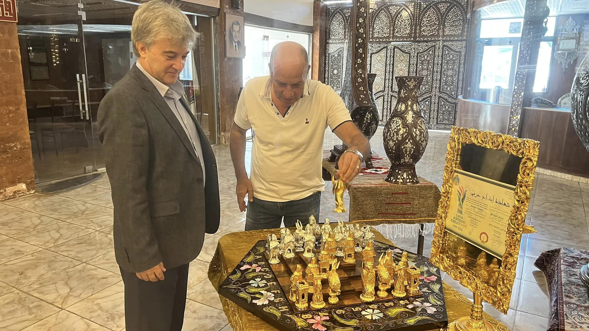 El artesano incorporó símbolos exclusivos de las civilizaciones que pasaron por Siria, donde representó al rey con una estatua del gran sultán Saladino, y la reina Zenobia, famosa por su belleza.
