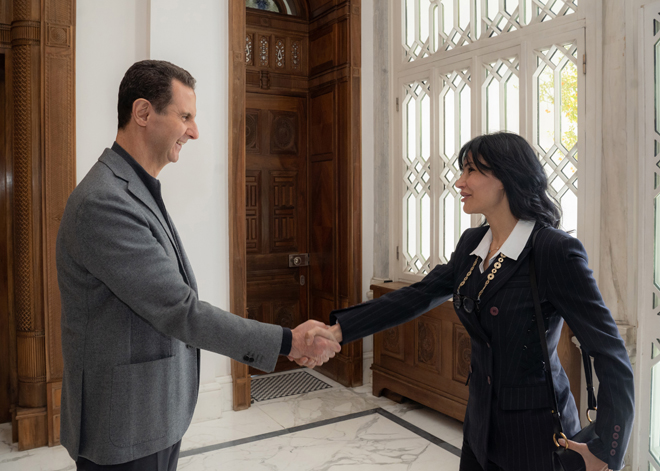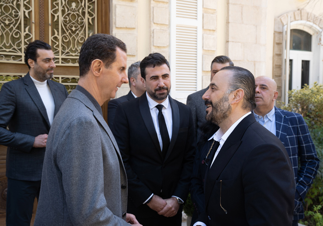 Damasco, 11 mar (SANA) El presidente sirio Bashar Al-Assad, recibió hoy a un grupo de destacados y famosos actores, actrices y directores de telenovelas sirias.