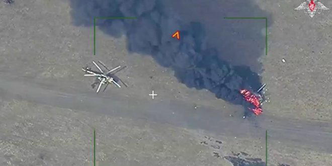 Asimismo, el Ejército ruso destruyó 2 helicópteros Mi-8 de la Fuerza Aérea de Ucrania y alcanzó un sistema de misiles antiaéreos Patriot, así como un taller de reparación de armas y equipos militares.