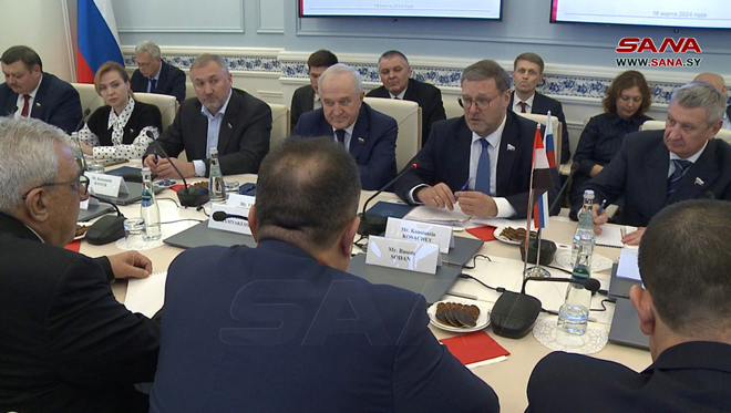 Moscú, 19 mar (SANA) La delegación del Parlamento sirio que acompañó las elecciones presidenciales en Rusia se reunió hoy con el vicepresidente del Consejo de la Federación rusa, Konstantin Kosachev, y abordó con él las formas de fortalecer los lazos parlamentarios entre los dos países amigos.