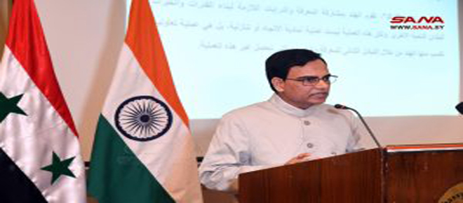 El director del Instituto Diplomático del Ministerio de Asuntos Exteriores y Expatriados, Imad Mustafa, destacó los fundamentos y las constantes que unieron la India y Siria durante muchas décadas.