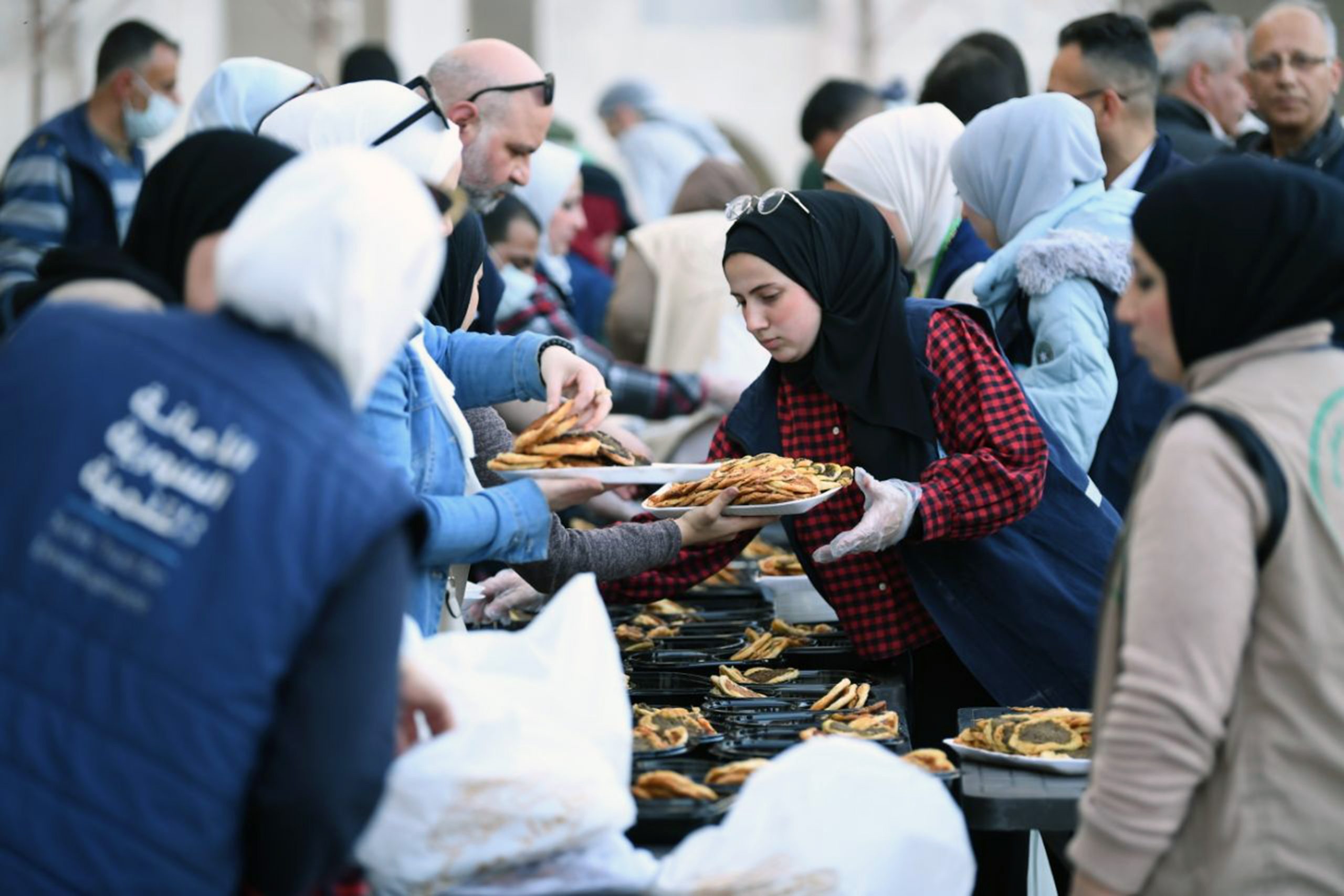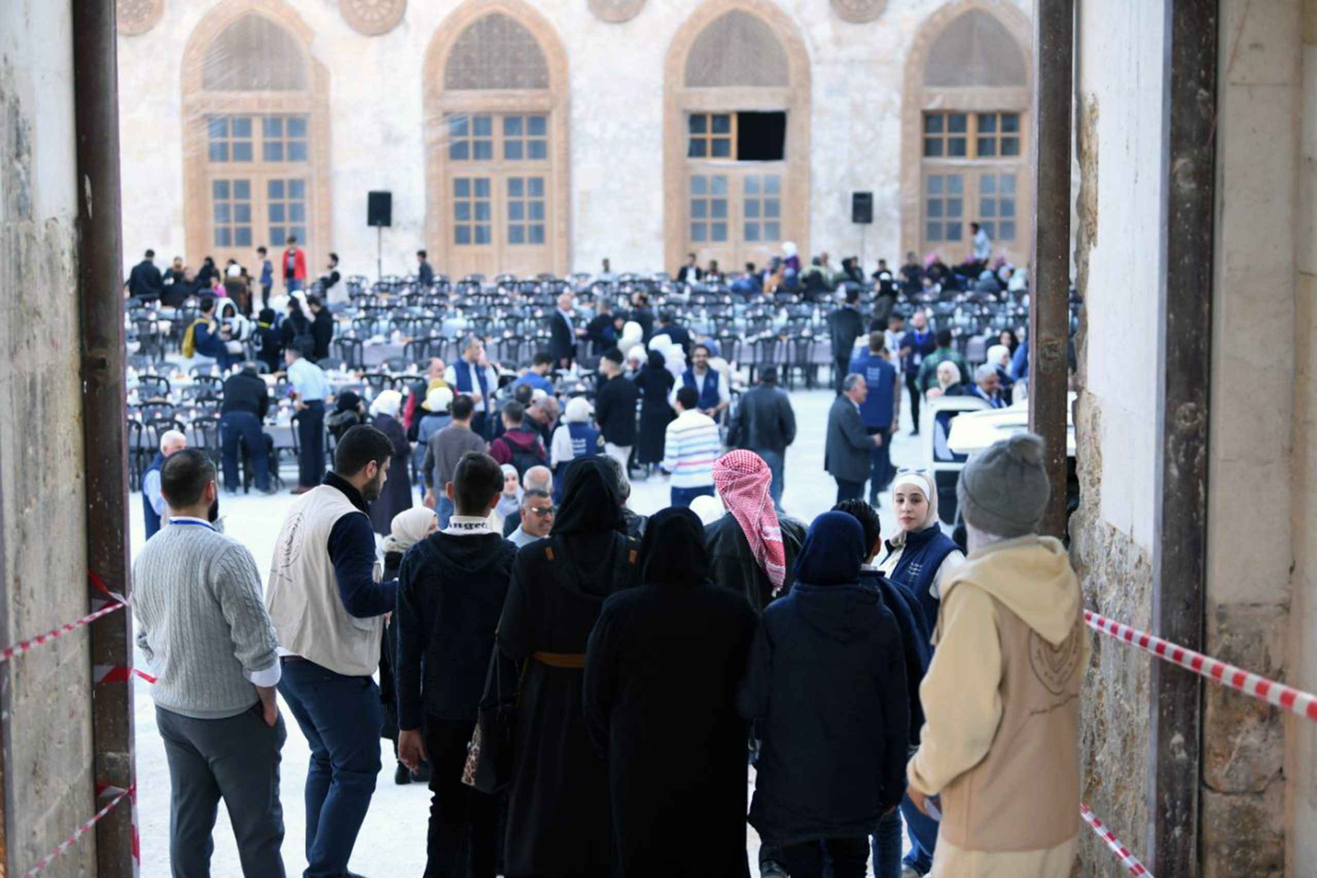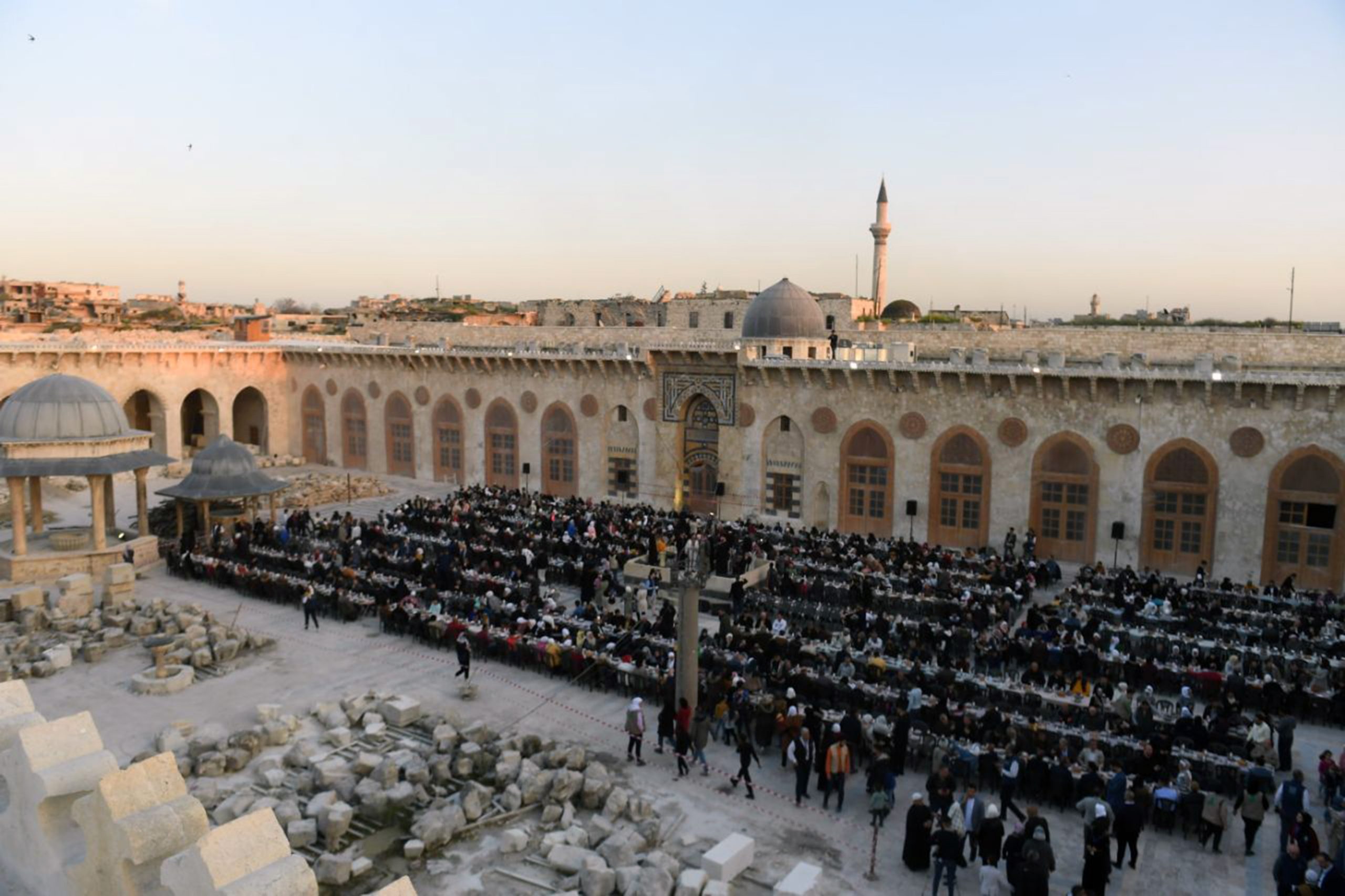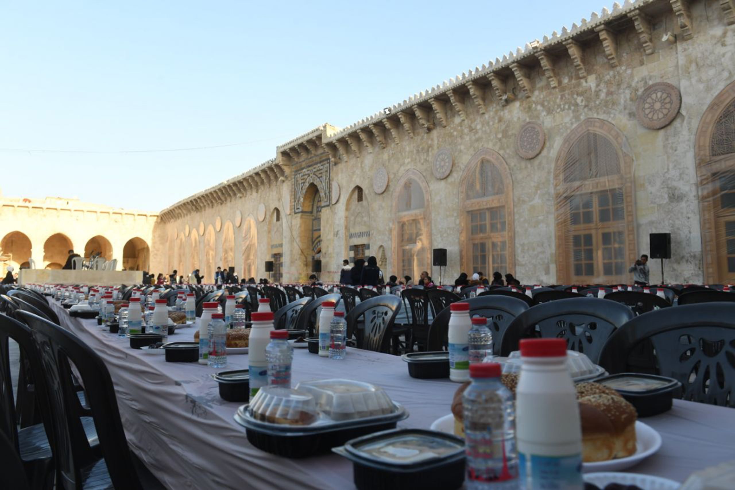 En esta ocasión, el Ministerio de Asuntos Sociales y Trabajo, en cooperación con el Fondo Sirio para el Desarrollo y la Unión de Sociedades Caritativas de Alepo, organizó un gran banquete colectivo de Iftar (rotura del ayuno) donde alrededor de 1.400 fieles compartieron la comida.