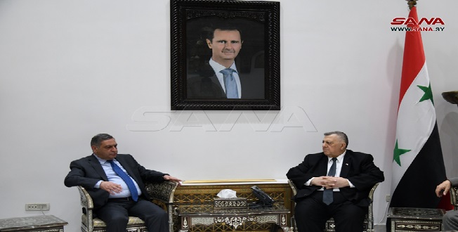 Damasco, 02 abr (SANA) El presidente de la Asamblea Popular, Hammouda Sabbagh, recibió este martes a Dikran Kevorkian, embajador de la República de Armenia en Damasco.
