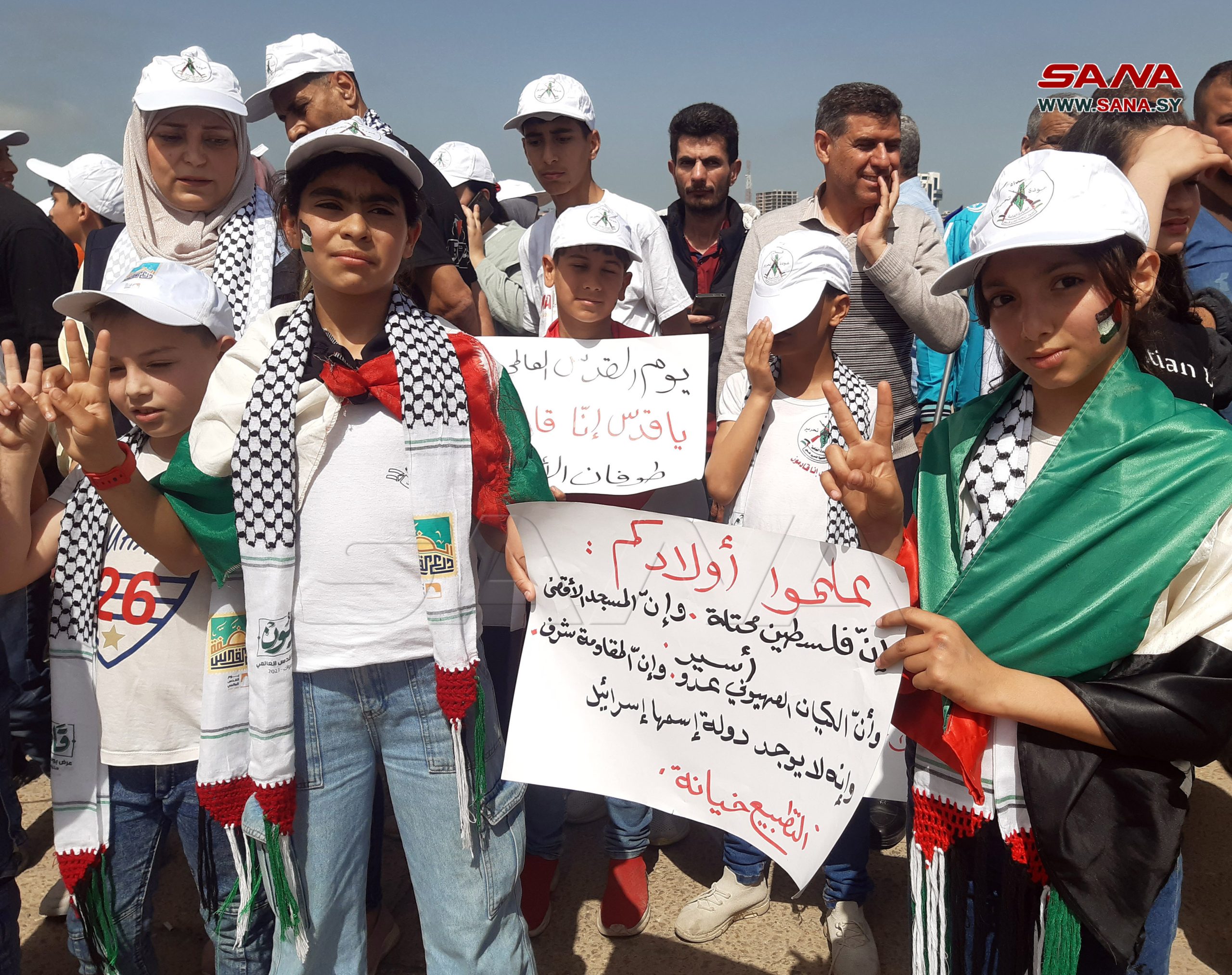 El secretario general del Frente Popular para la Liberación de Palestina (Comando General) en Latakia, Hussein Al-Zoben, señaló que esta marcha refleja la determinación de los palestinos por recuperar su tierra y sus derechos, y confirma una pronta derrota de la entidad israelí.