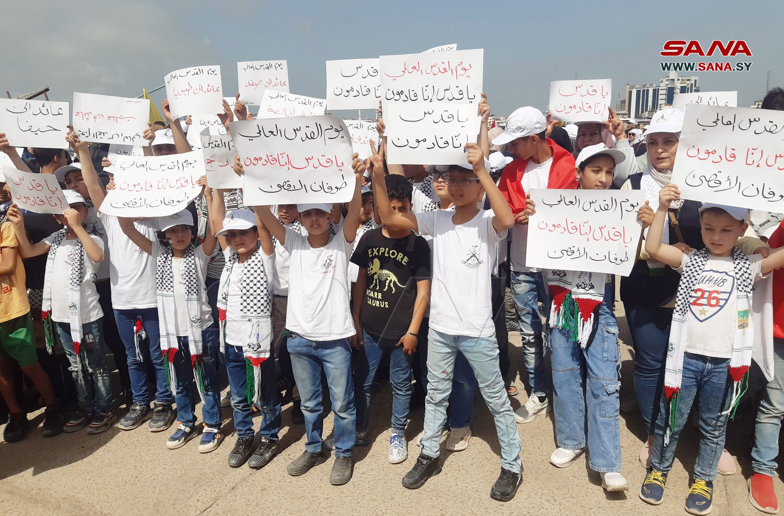 Por su parte, el agregado cultural de la embajada de Irán en Latakia, Ali Reza Fadavi, recordó que el Día Mundial de Jerusalén establecido por el Imam Khomeini hace más de 45 años, representa el rechazo global a los crímenes y prácticas inhumanas cometidos por el ocupante sionista contra el pueblo y los lugares sagrados de Palestina y Gaza.