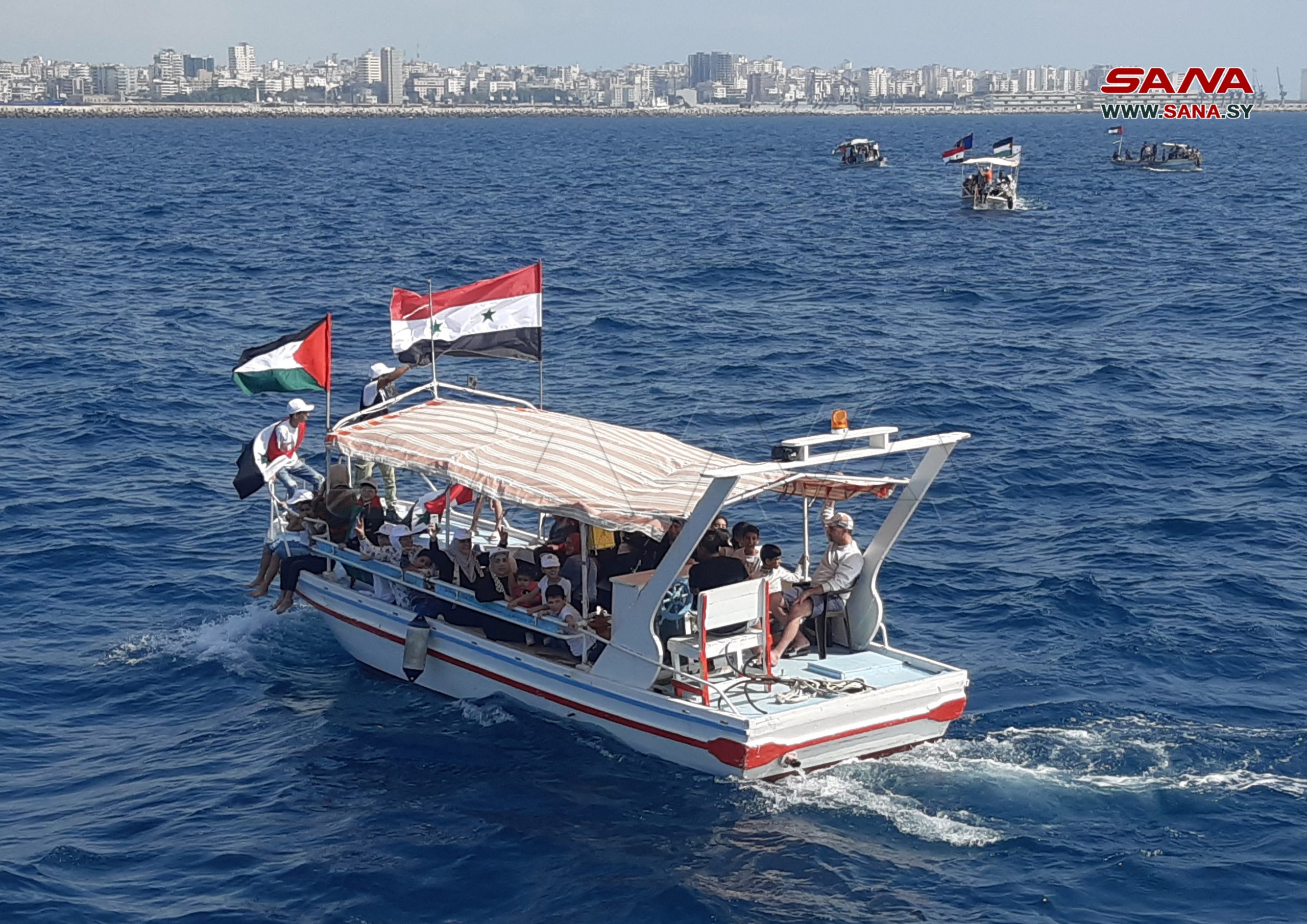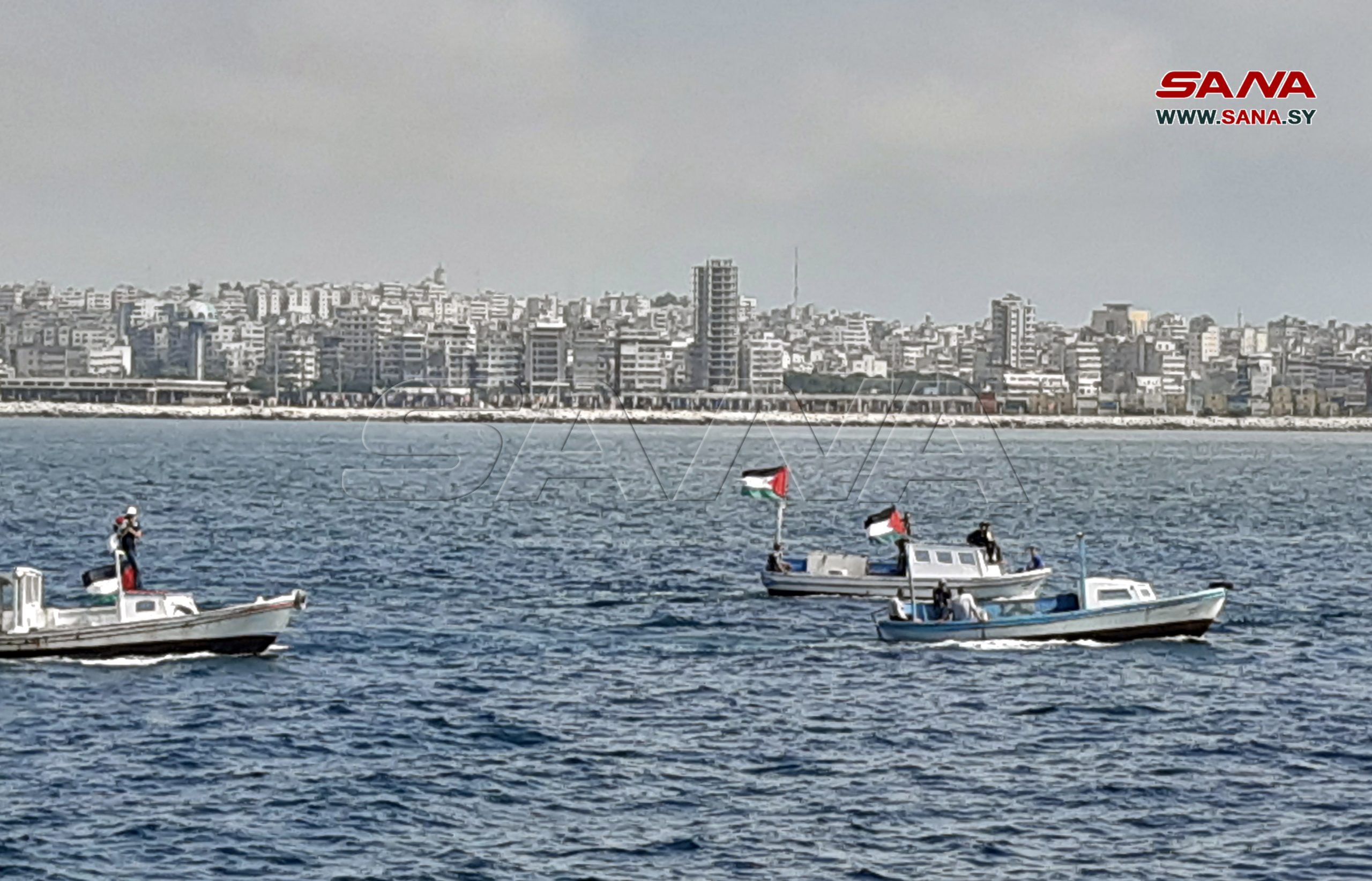 El acto comenzó en el puerto de pesca y recreo de Latakia, e incluyó una concentración en solidaridad con Gaza y el pueblo palestino.