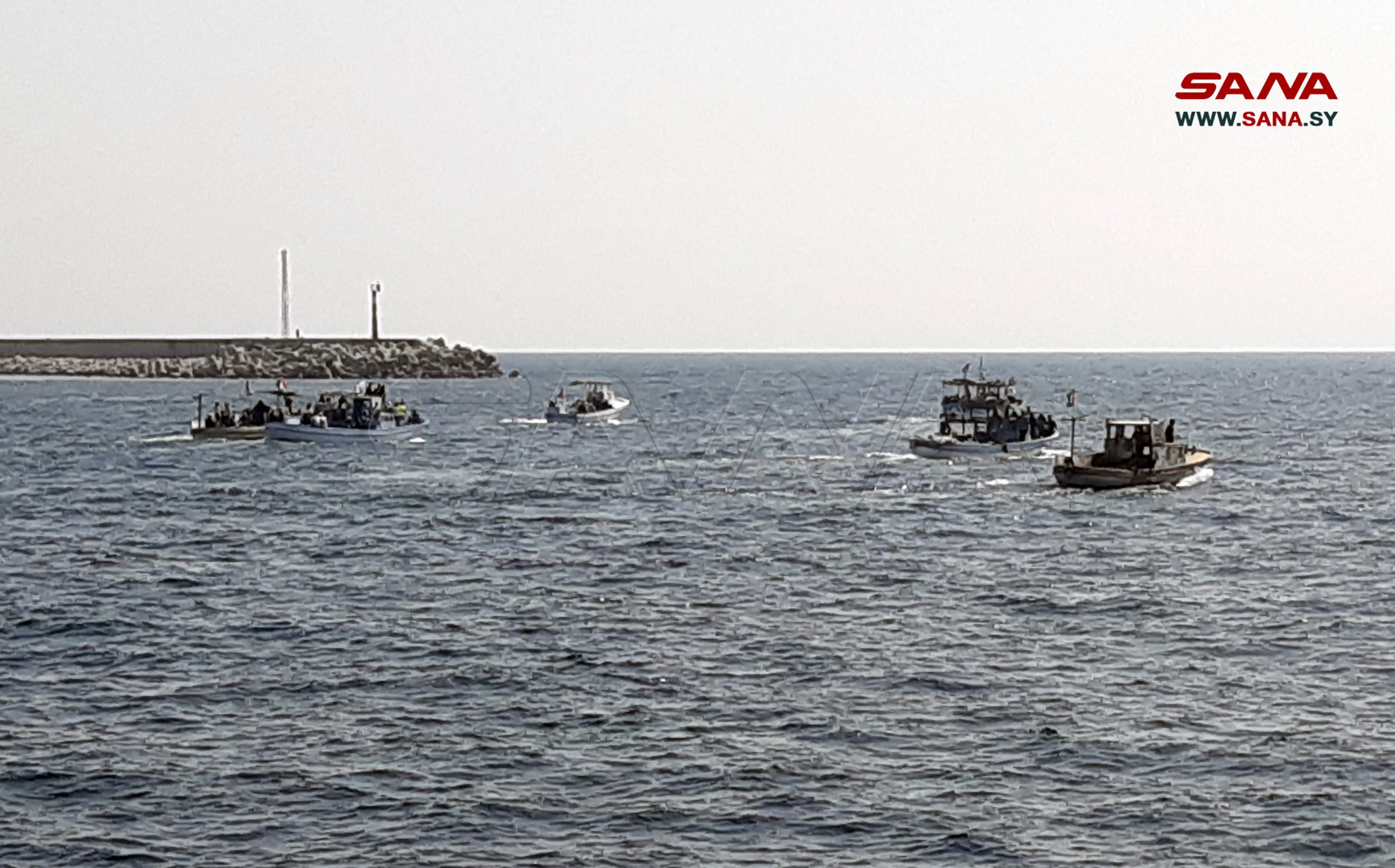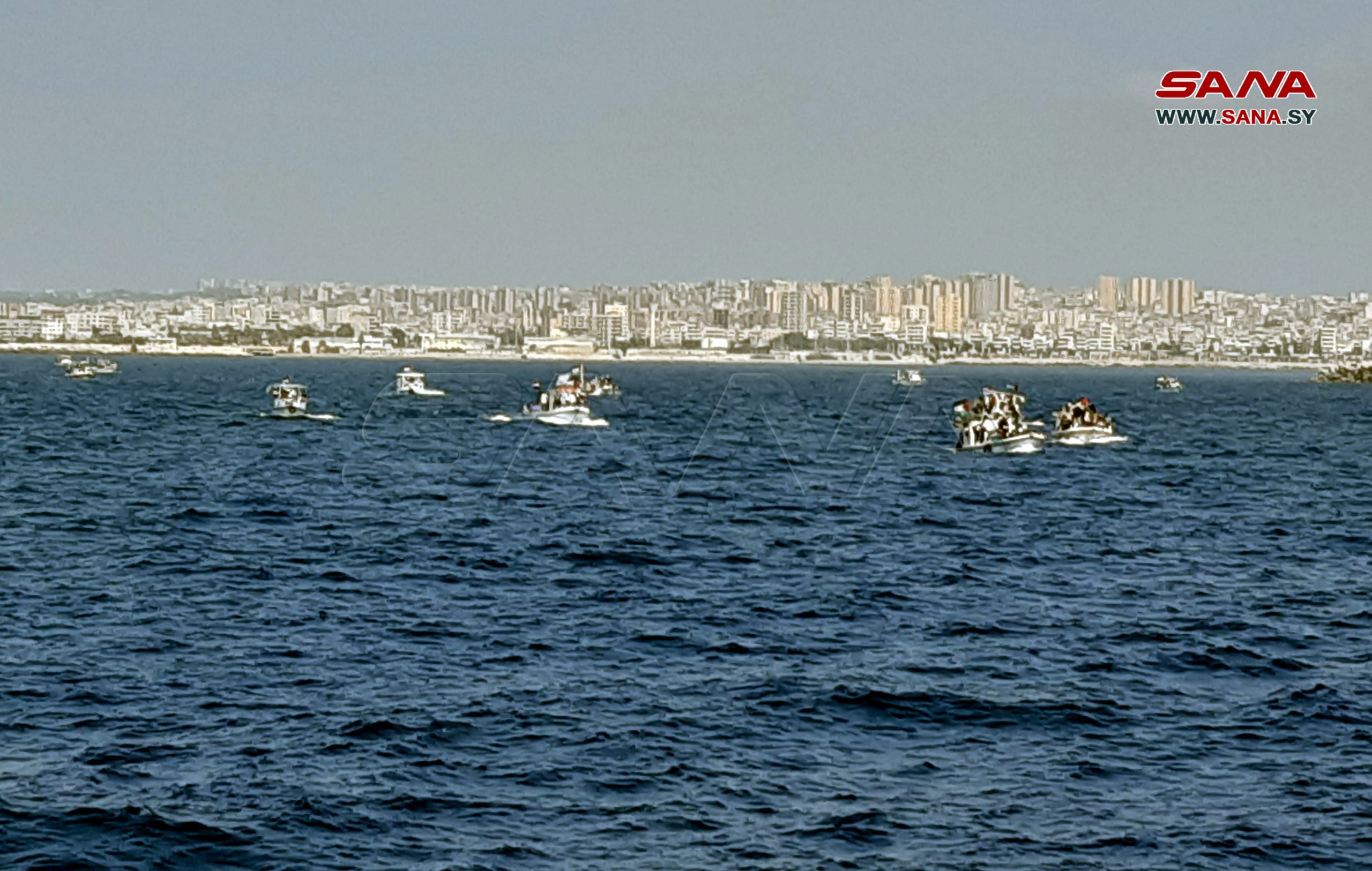 Acto seguido se llevó a cabo una procesión marítima hacia Palestina ocupada, simbolizando la esperanza de todo palestino por regresar a su tierra, con barcos ondeando banderas nacionales sirias y palestinas.