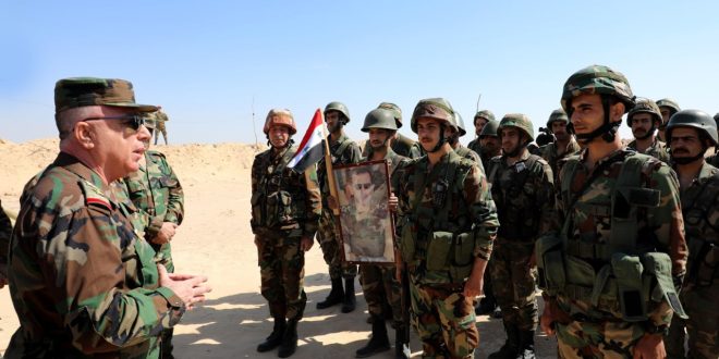 Homs, 11 abr (SANA) El jefe del Estado Mayor del Ejército y de las Fuerzas Armadas en Siria, el teniente general Abdul Karim Mahmoud Ibrahim, visitó las formaciones militares que operan contra el terrorismo en la vasta región desértica de Al-Badieh.