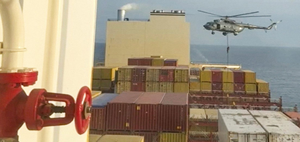 Un vídeo publicado por el canal de noticias oficial iraní IRIB, muestra a comandos del Cuerpo de Guardianes de la Revolución Islámica (CGRI) de Irán bajando de un helicóptero sobre la cubierta de una embarcación cerca del estratégico Estrecho de Ormuz.