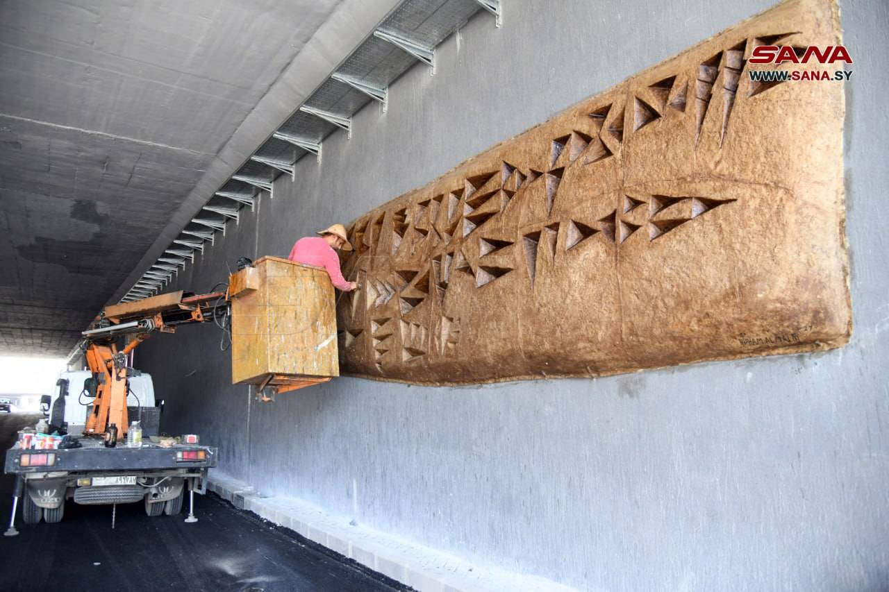 Damasco, 23 abr (SANA) Ocho esculturas en relieve decoraron el túnel de Mowassat que será inaugurado próximamente en Damasco, la capital siria.