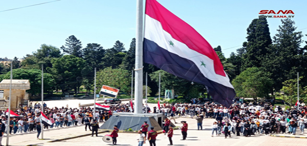 Los estudiantes sirios conmemoran el aniversario 78 de la Independencia de su país