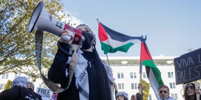 Los activistas, según informó The New York Times, corearon eslóganes a favor de Palestina y pidieron el fin de los envíos de armas al régimen sionista.