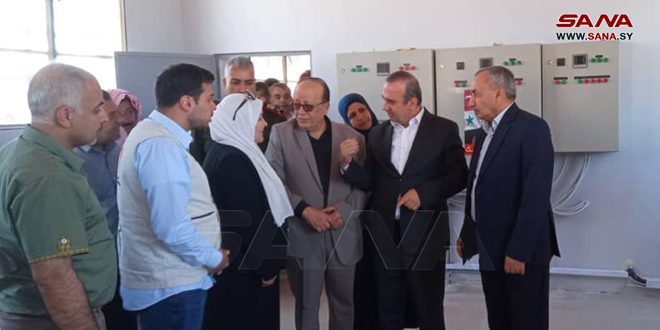 Idlib, 16 may (SANA) El ministro de Recursos Hídricos, Hussein Makhlouf, puso hoy en servicio sistemas de energía solar renovable para operar cuatro estaciones de bombeo de agua en los poblados liberados del terrorismo (Sinjar, Tal al-Kiram, al-Khawain y al-Tamanah) en el campo del sur de la provincia de Idlib tras completar su rehabilitación.