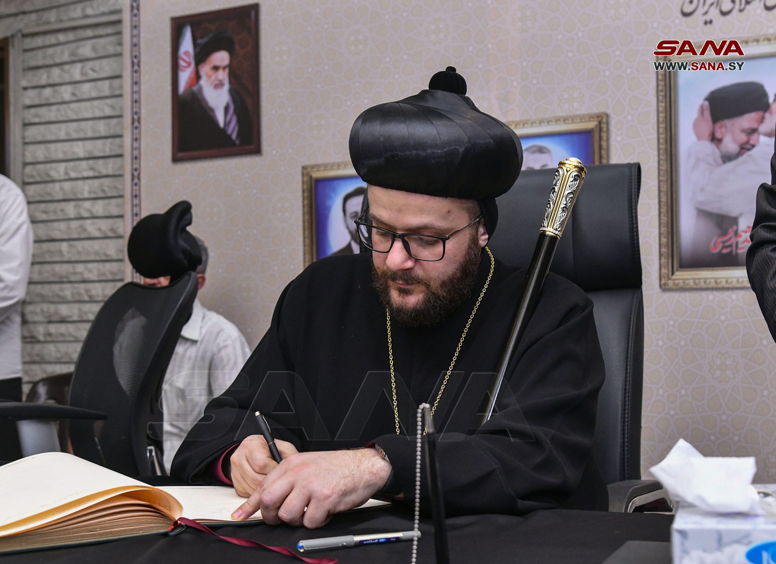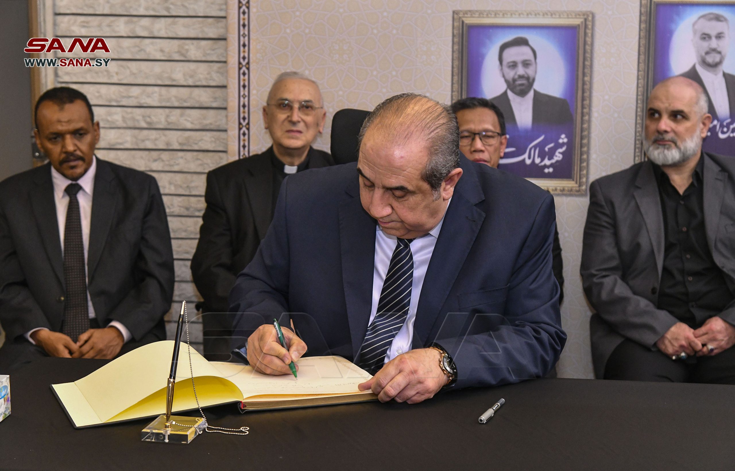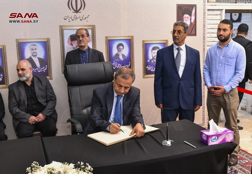 Damasco, 22 may (SANA) La Embajada de la República Islámica de Irán en Damasco ha continuado recibiendo a las figuras y delegaciones que quieren honrar la memoria del presidente iraní, Ebrahim Raisi, y sus acompañantes que cayeron mártires el domingo pasado en un accidente aéreo.