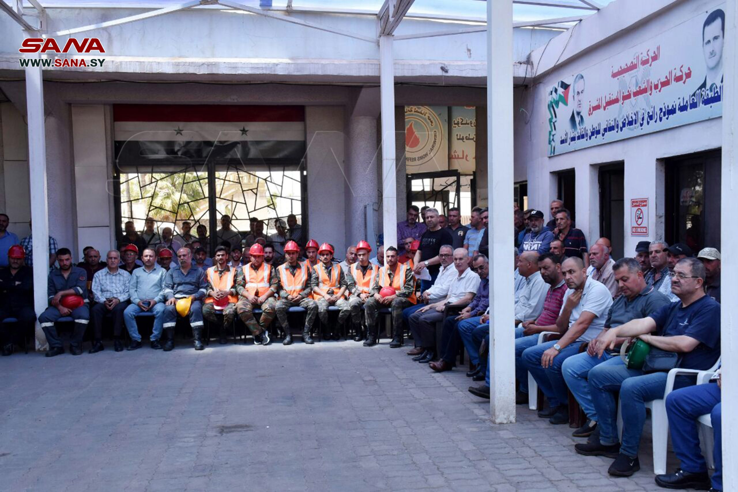 El gobernador de Homs, Numer Makhlouf, transmitió el aprecio del presidente Al-Assad al personal de la refinería y a todos los cuadros laborales y administrativos de las instituciones que participaron y brindaron apoyo en la extinción de este incendio.