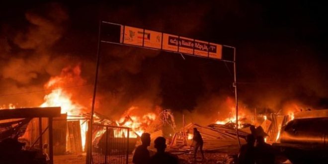 La Defensa Civil de Gaza dijo que el ataque aéreo provocó un incendio que devastó un lugar de desplazamiento en el noroeste de Rafah.