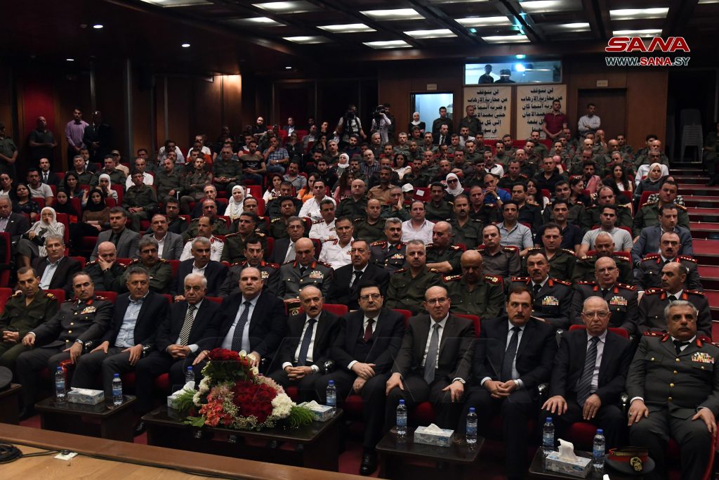 En su intervención, el titular del Interior, general Muhammad al-Rahmoun, transmitió los saludos y el aprecio del presidente Bashar al-Assad a los efectivos de las Fuerzas de Seguridad Interior y al pueblo sirio en esta ocasión tan importante para el país.