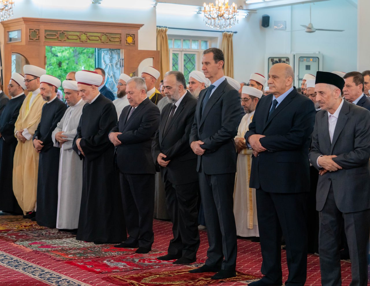 Rezaron junto al presidente, el primer ministro Hussein Arnous, el ministro de Asuntos Religiosos (Awqaf) Abdulsattar Alsayyed, altos funcionarios en el Estado y el Partido, disputados en el parlamento y un grupo de ulemas musulmanes.