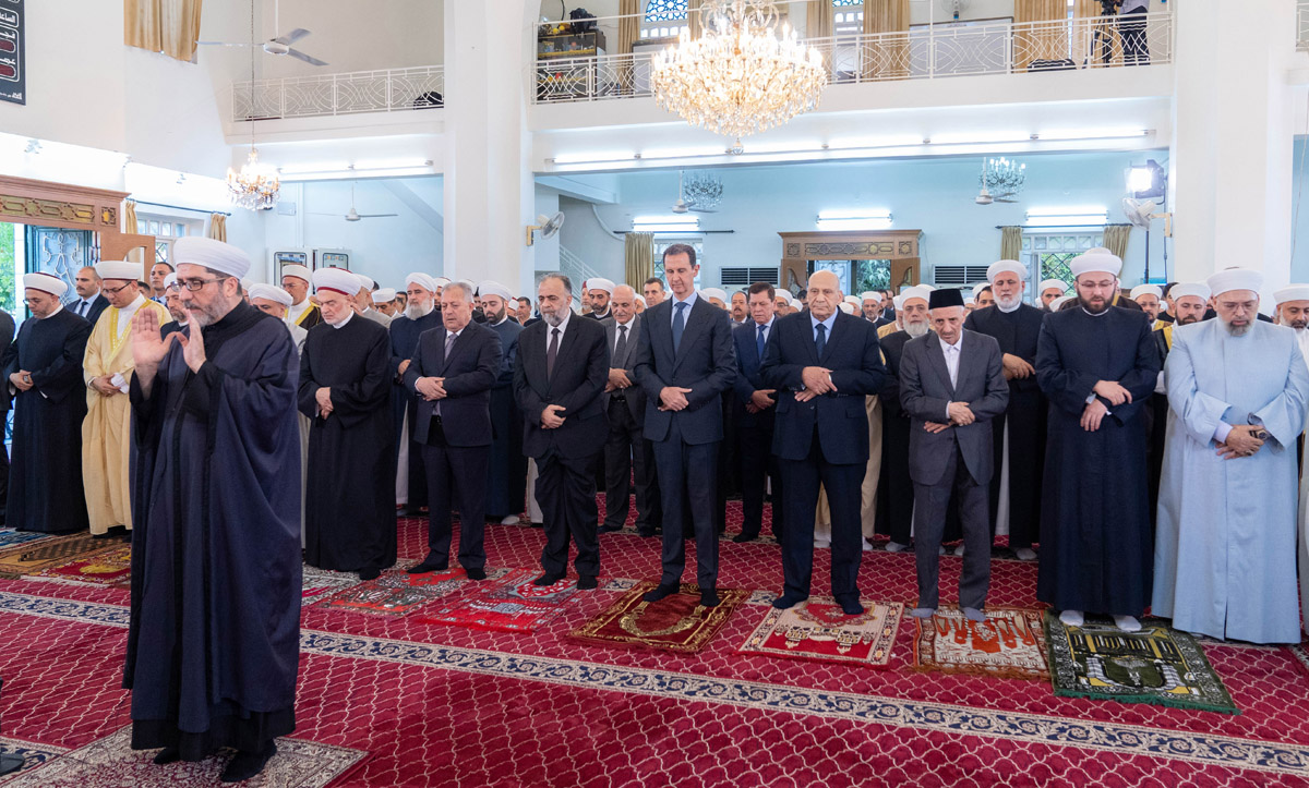 Damasco, 16 jun (SANA) El presidente Bashar Al-Assad, efectuó hoy el rezo de Eid Al-Adha (fiesta musulmana del sacrificio) en la mezquita “Al-Rawda” en el barrio homónimo en la capital Damasco.