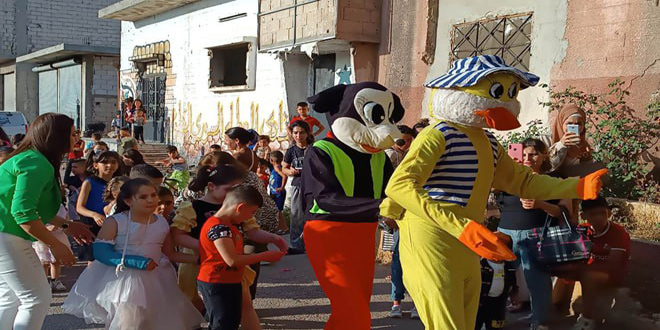 La autora de la iniciativa, Lara Al-Abbas, declaró a SANA, que periódicamente se organizan actividades humanitarias y de entretenimiento para los niños durante las vacaciones y en diversas ocasiones para ofrecerles una dosis de alegría.