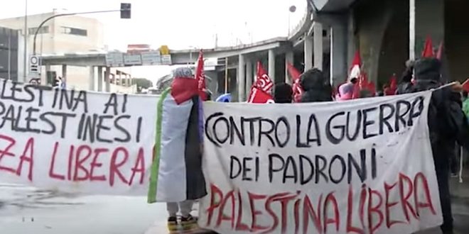 Roma, 25 jun (SANA) Manifestantes bloquearon hoy el puerto de Génova, en la norteña región italiana de Génova, en apoyo a Palestina y contra el envío de armas a Israel.