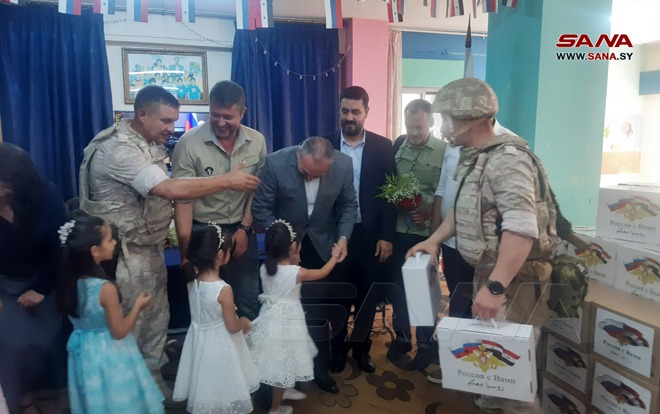 El jefe del Departamento de Ayuda Humanitaria del mencionado Centro, el teniente coronel Serguéi, explicó a SANA que la ayuda “incluyó la distribución de alimentos a los niños huérfanos y a los trabajadores del orfanato, además de la inauguración de dos pisos tras restaurarlos y equiparlos”.