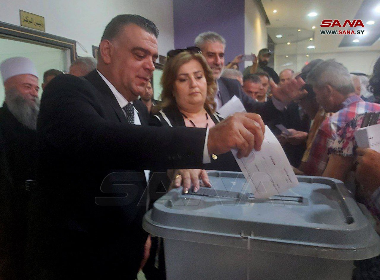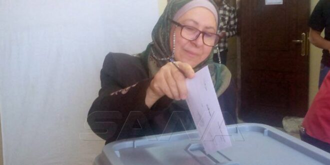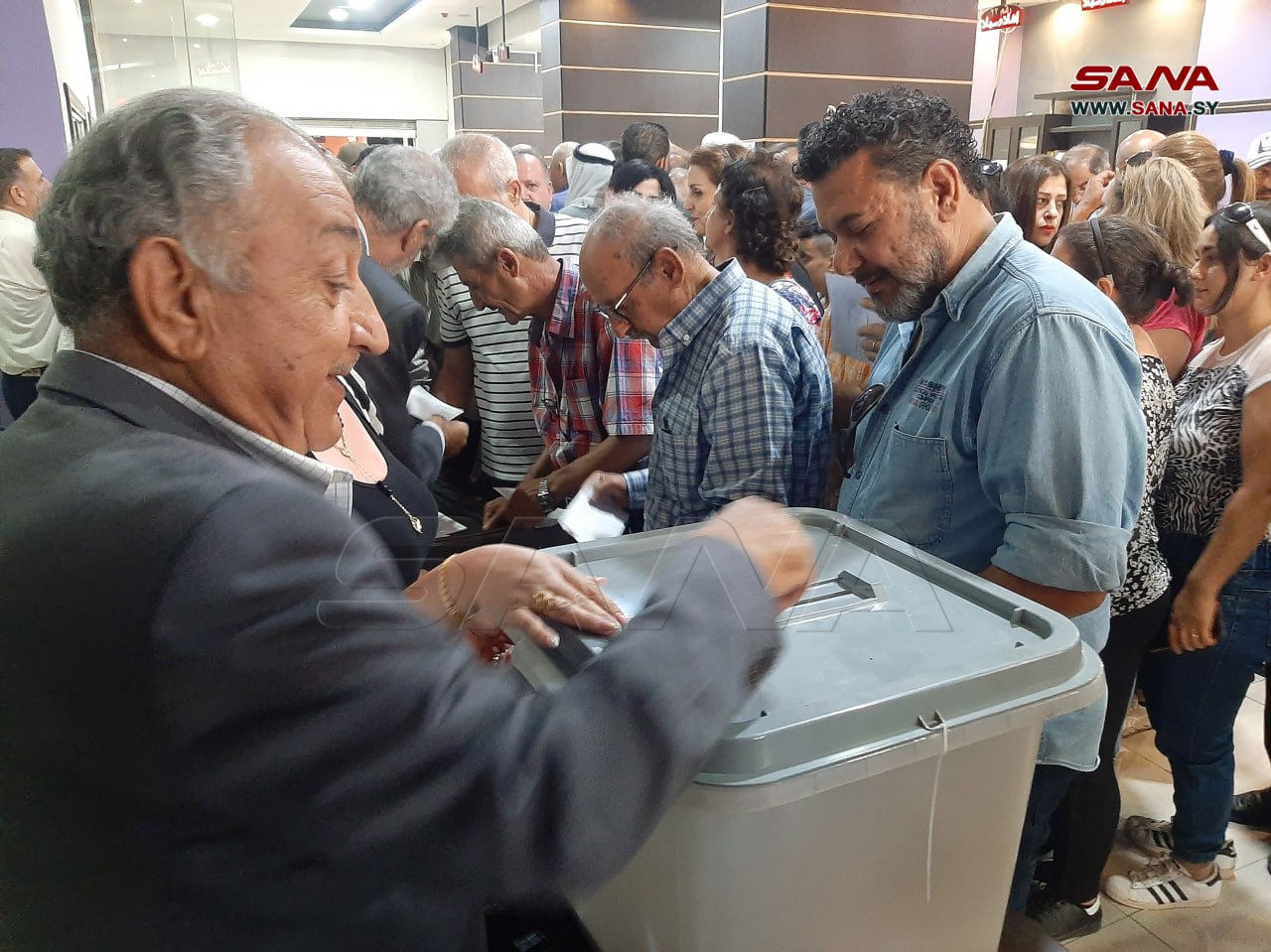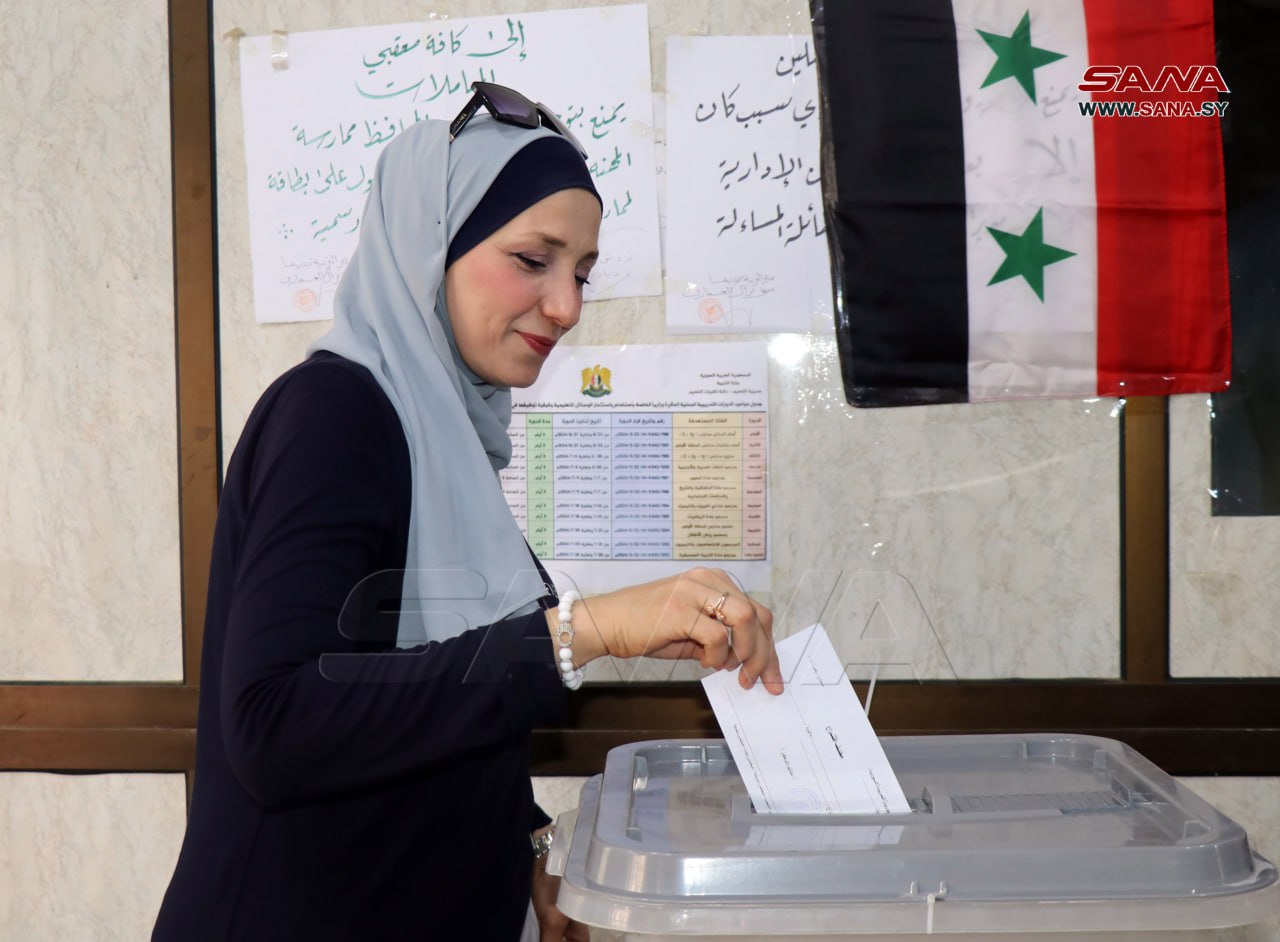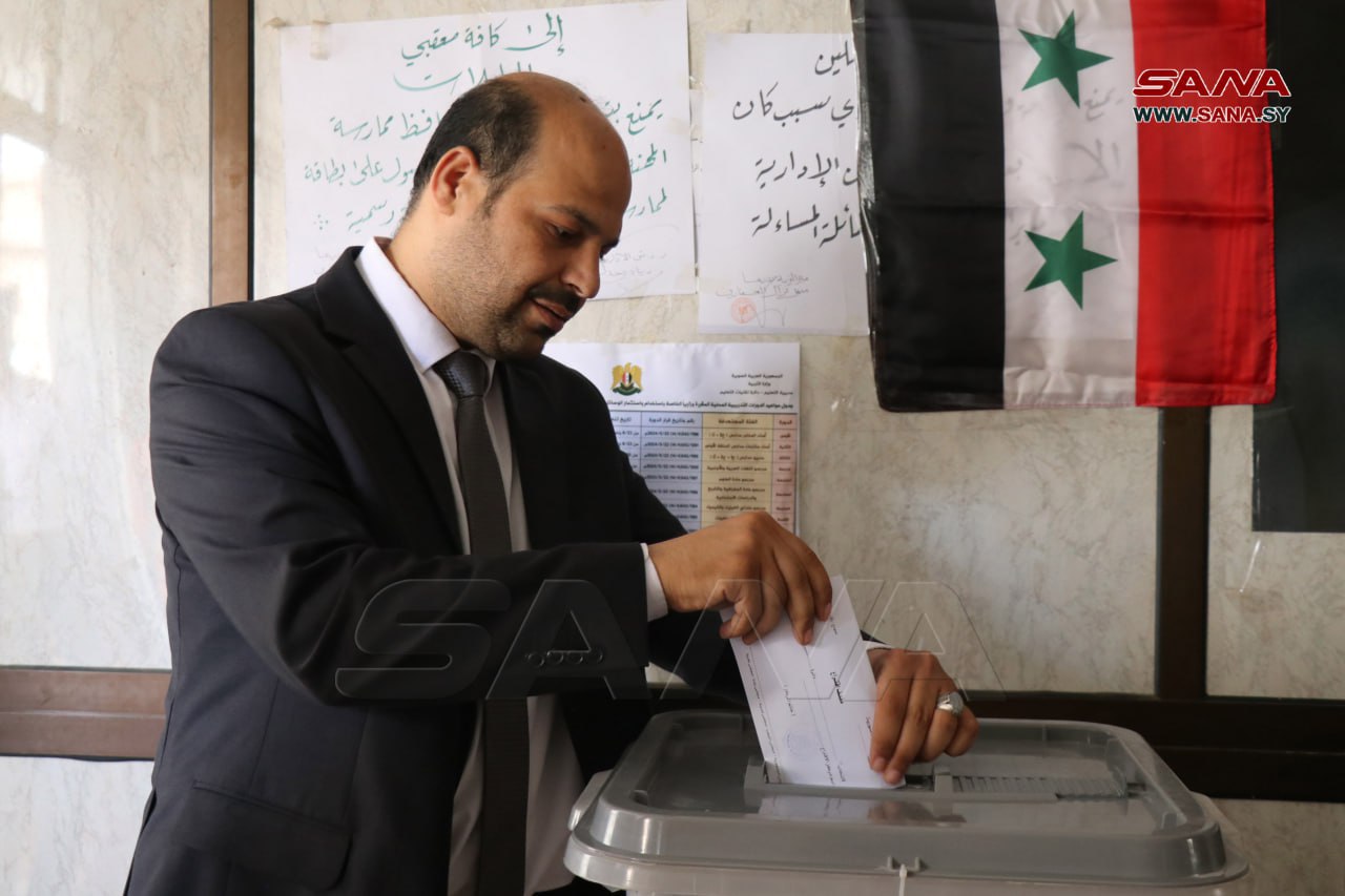 Los residentes de la provincia de Deraa participan en el proceso de votación para elegir a sus representantes en la Asamblea Popular.