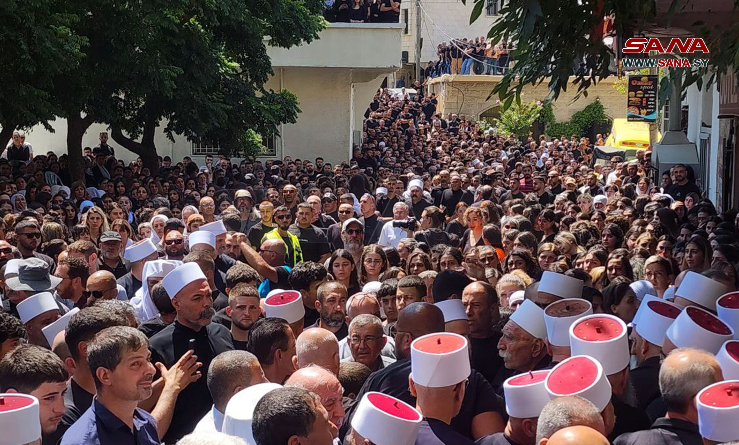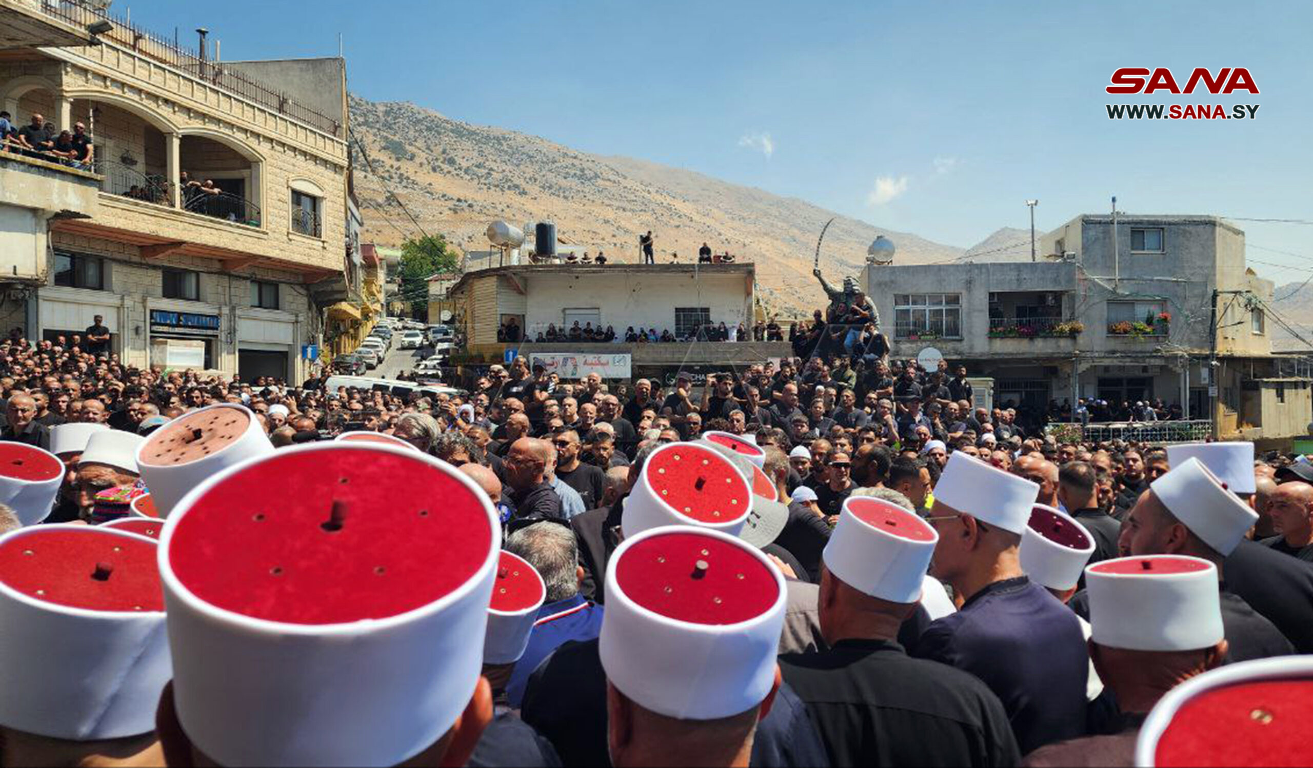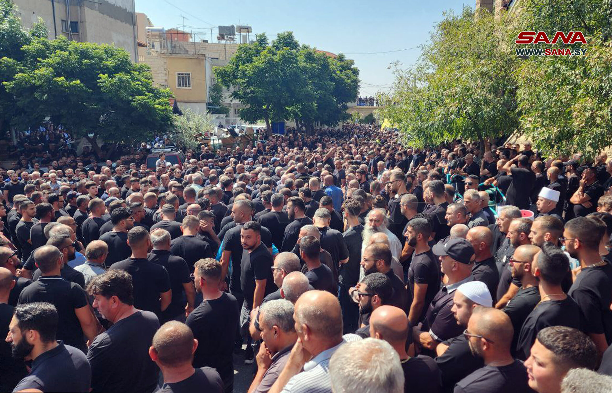 El Golán sirio ocupado, 28 jul (SANA) Los sirios golaneses se congregaron hoy en la ocupada localidad de Majdal Shams en el Golán sirio ocupado, para despedir a las víctimas mortales de la masacre cometida por el ocupante israelí contra en un campo de fútbol.