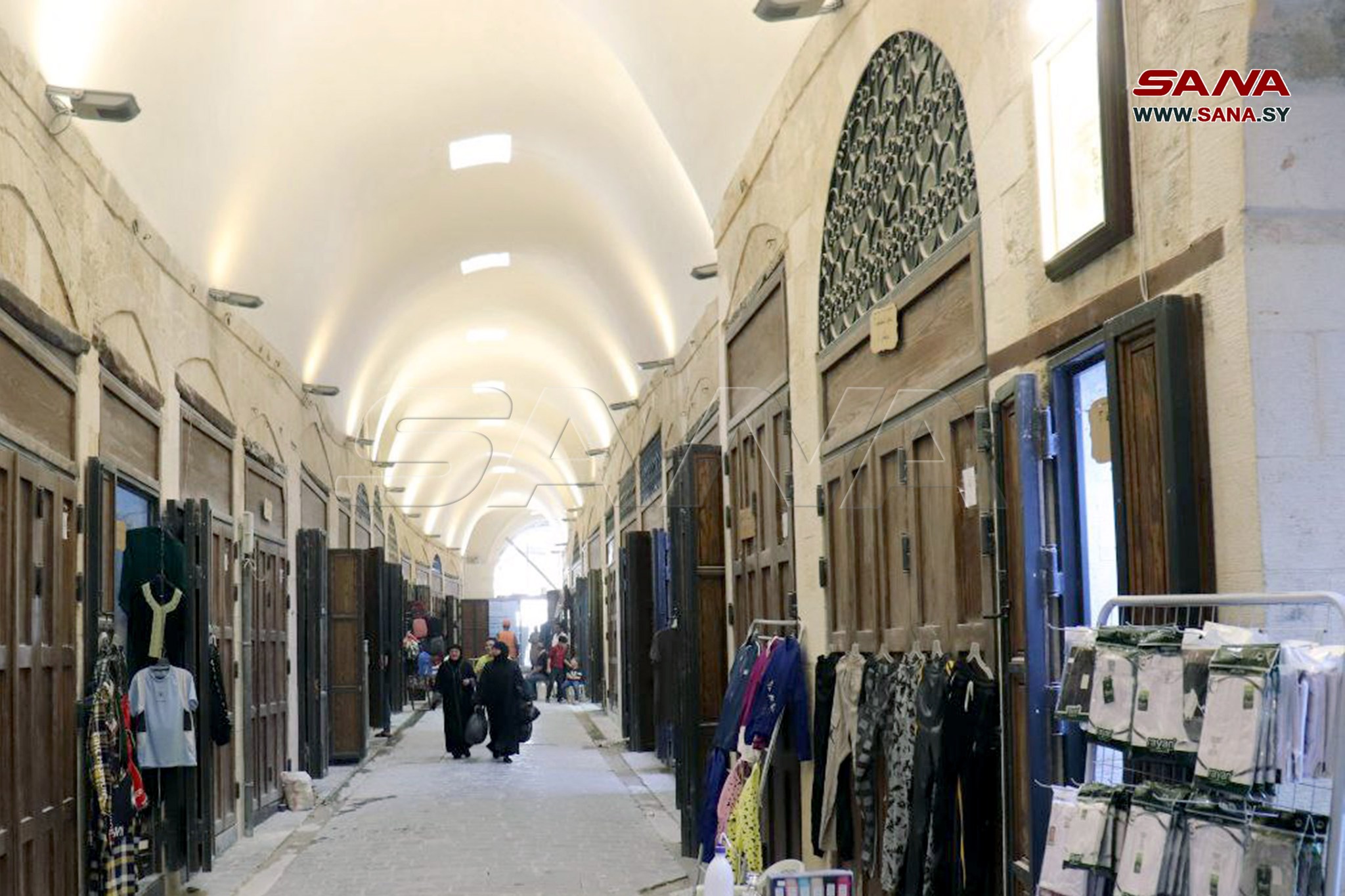 Gracias a esfuerzos combinados de la comunidad local y las instituciones estatales, cuatro mercados antiguos fueron reinaugurados tras someterse a intensos trabajos de restauración, con la finalidad de recuperar su vitalidad y funcionalidad por su papel importante no solo en revitalizar la economía de Alepo sino también preservar su patrimonio cultural e histórico.