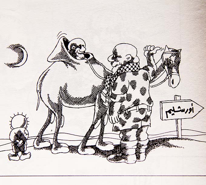 Dibujó alrededor de 40.000 caricaturas durante su vida, como “Fátima”, un símbolo de la mujer palestina fuerte e intransigente, y “El hombre bueno”, que refleja a los palestinos sin hogar oprimidos, luchadores y, a veces, destrozados.