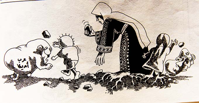 La caricatura que mantuvo inmortal a este hombre después de su muerte fue el personaje de “Handala”, el niño palestino que le da la espalda a un mundo hipócrita y se convirtió en el icono amargura de Palestina.
