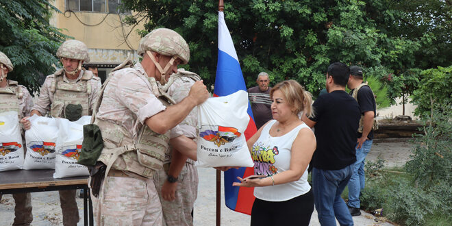 Latakia, 06 sep (SANA) El Centro de Coordinación Ruso, ubicado en la base de Hemeimem, entregó este jueves ayuda alimentaria a los residentes de la aldea de Zagrin, en el norte de la provincia costera de Latakia.