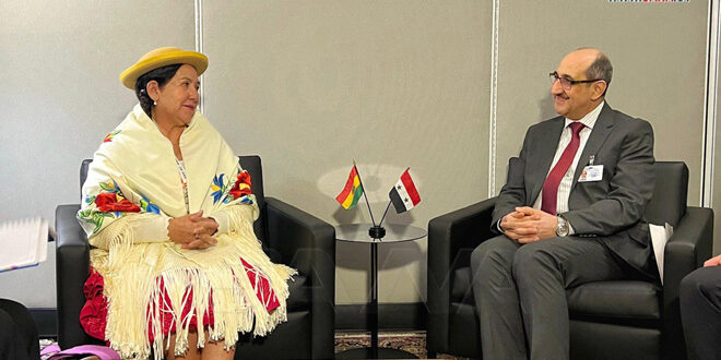 Nueva York, 27 sep (SANA) El ministro de Exteriores y Emigrantes, Bassam Sabbagh, subrayó durante su reunión con la canciller de Bolivia, Celinda Sosa, la existencia de desafíos comunes que ambos países enfrentan, principalmente la resistencia a los intentos de dominación que algunas naciones occidentales intentan imponer, así como sus injerencias en los asuntos internos de otros estados.