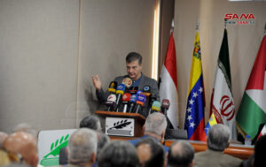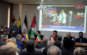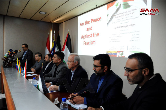 El embajador de Venezuela en Damasco, José Gregorio Biomorgi Muzattiz, señaló la necesidad de aunar los esfuerzos de todos con el fin de lograr la victoria sobre el imperialismo y el fascismo, y enfrentar este mal absoluto, e indicó que su país organizó hace un mes una conferencia de paz y se creó un movimiento global contra el fascismo.