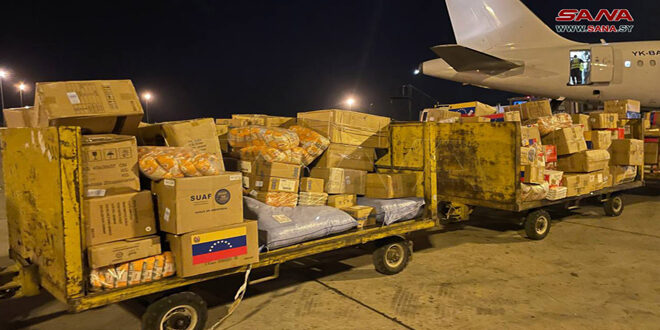 Damasco, 13 oct (SANA) Aterrizó en el Aeropuerto Internacional de Damasco un avión cargado de 13 toneladas de ayuda venezolana destinada a los desplazados que acudieron a Siria procedentes del Líbano.
