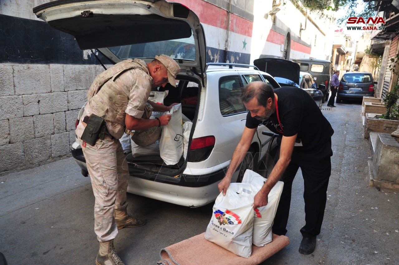 Damasco, 19 oct (SANA) El Centro de Coordinación Ruso en Damasco entregó hoy ayuda humanitaria al Centro de la Madre Teresa para personas con discapacidad, en el barrio de Bab Touma en Damasco.