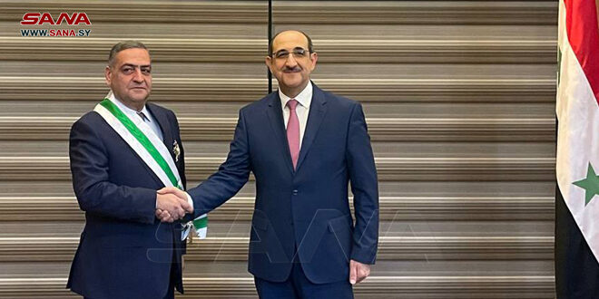 El ministro de Asuntos Exteriores y Expatriados, Bassam Sabbagh, entregó el reconocimiento al diplomático armenio en una ceremonia efectuada en la sede de la Cancillería en Damasco, la capital.