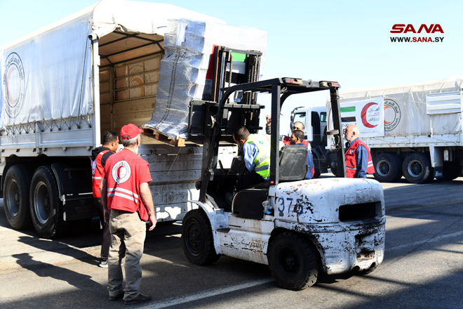 La asistencia fue recibida por la Media Luna Roja Árabe Siria y será distribuida en coordinación con la Media Luna Roja Emiratí y el Comité Supremo de Ayuda.