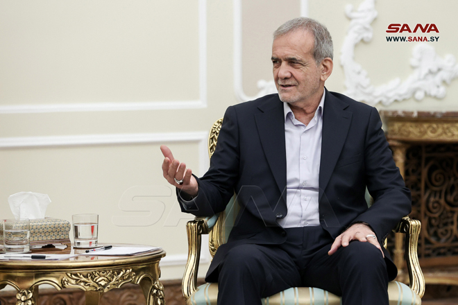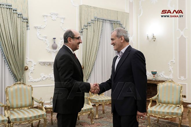 Sabbagh trasladó los saludos del presidente Bashar Al-Assad al presidente Pezeshkian y su invitación a visitar Siria.